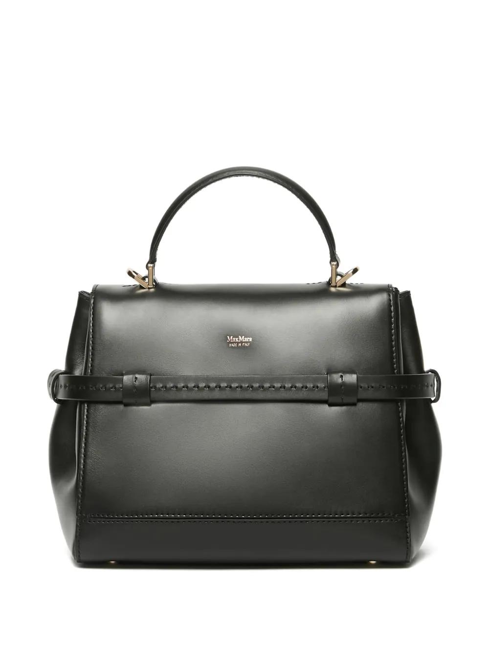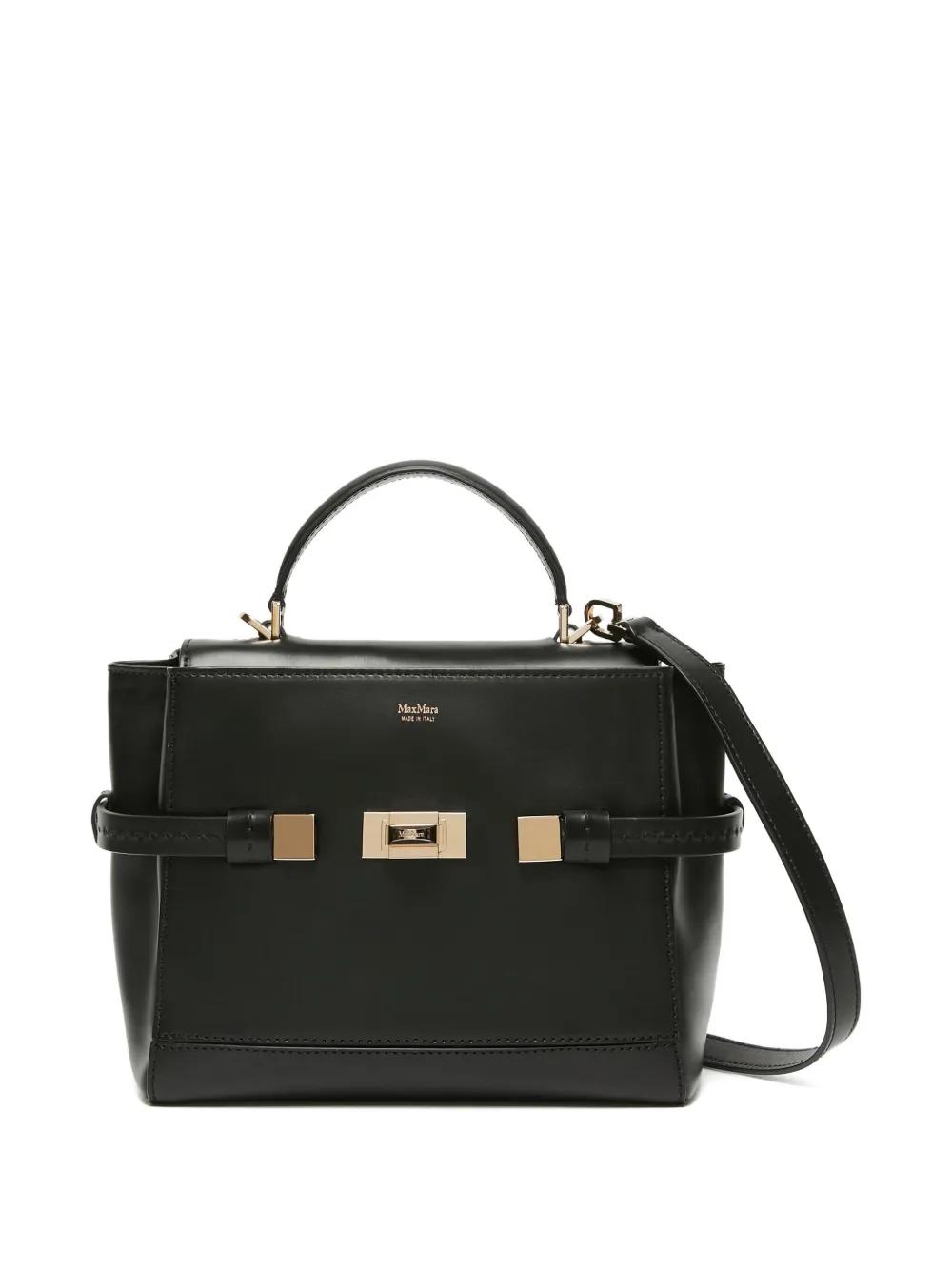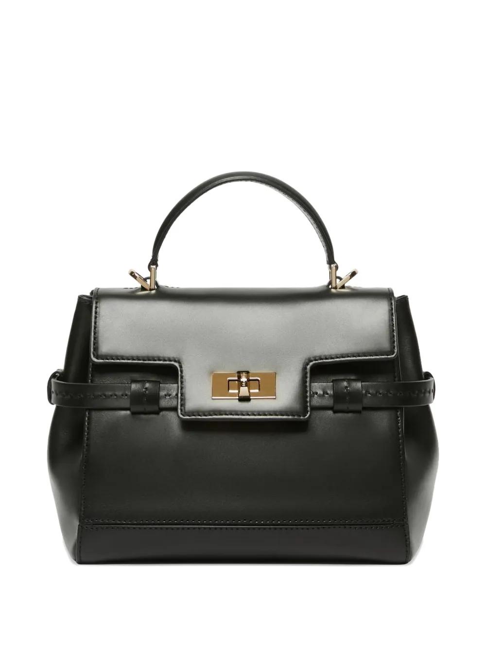 black top handle gold-tone hardware clasp fastening detachable shoulder strap tonal stitching