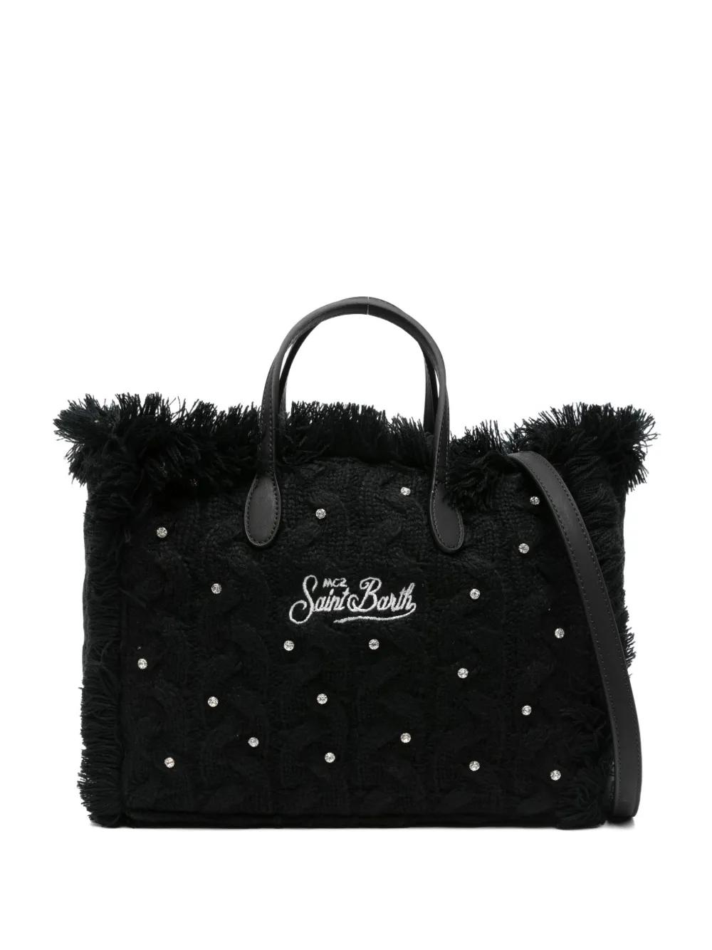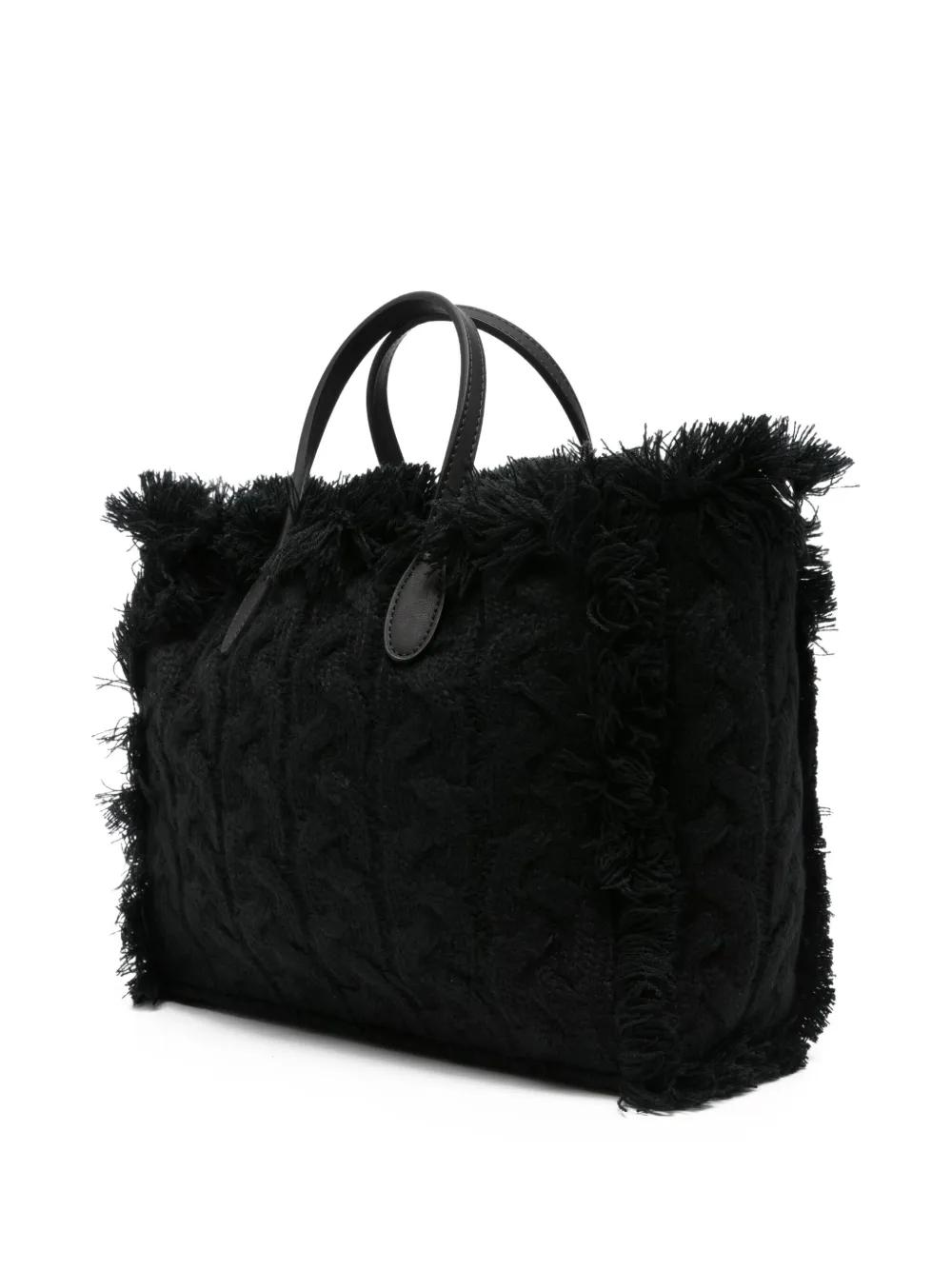 black two top handles detachable shoulder strap fringed detailing main compartment internal zip-fastening pocket