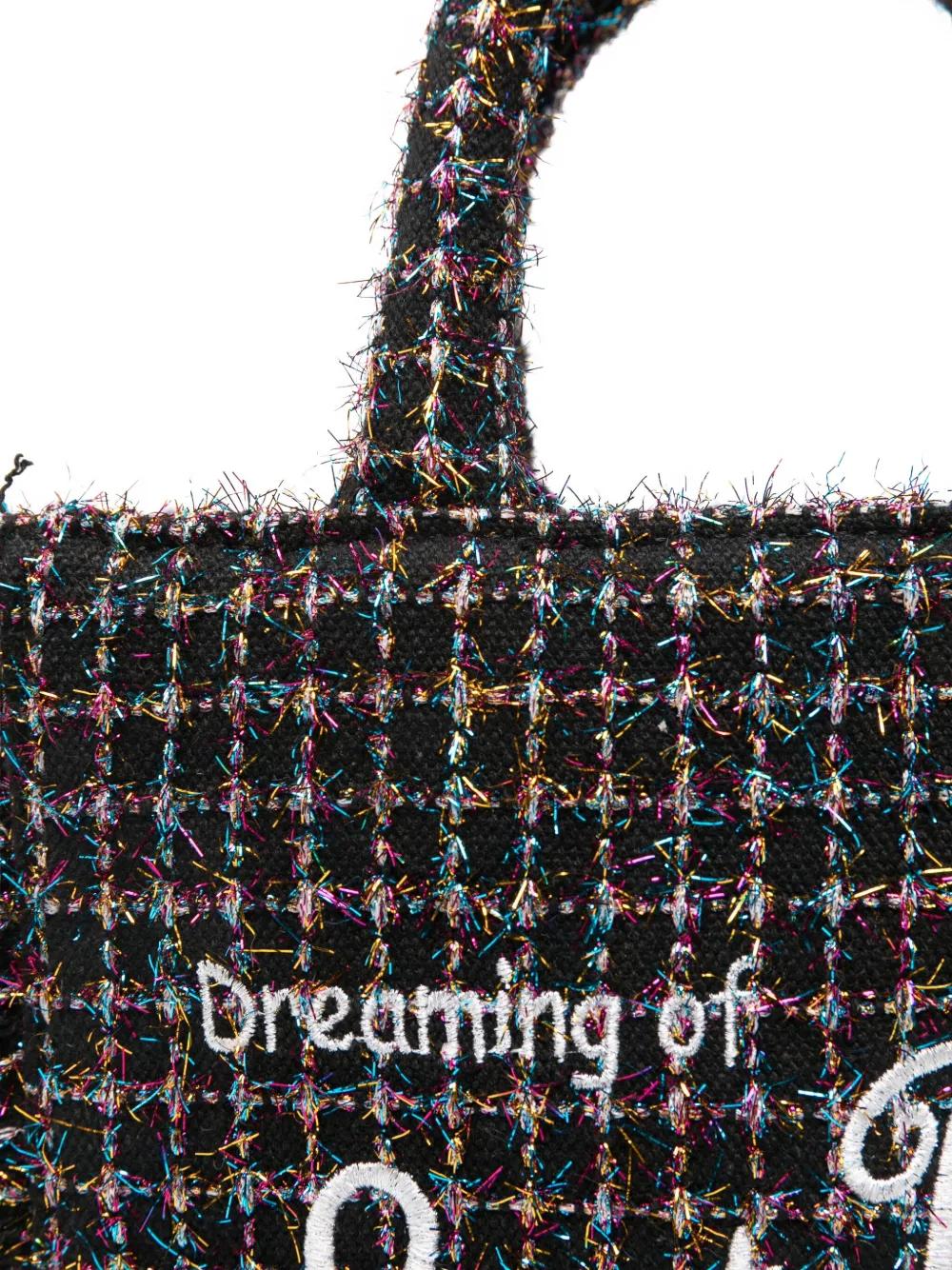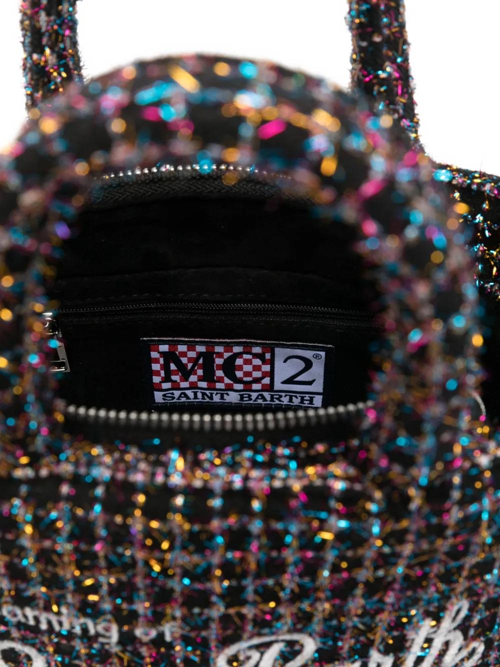 black/multicolour top handles fringed trim shoulder strap zip fastening internal slip pocket