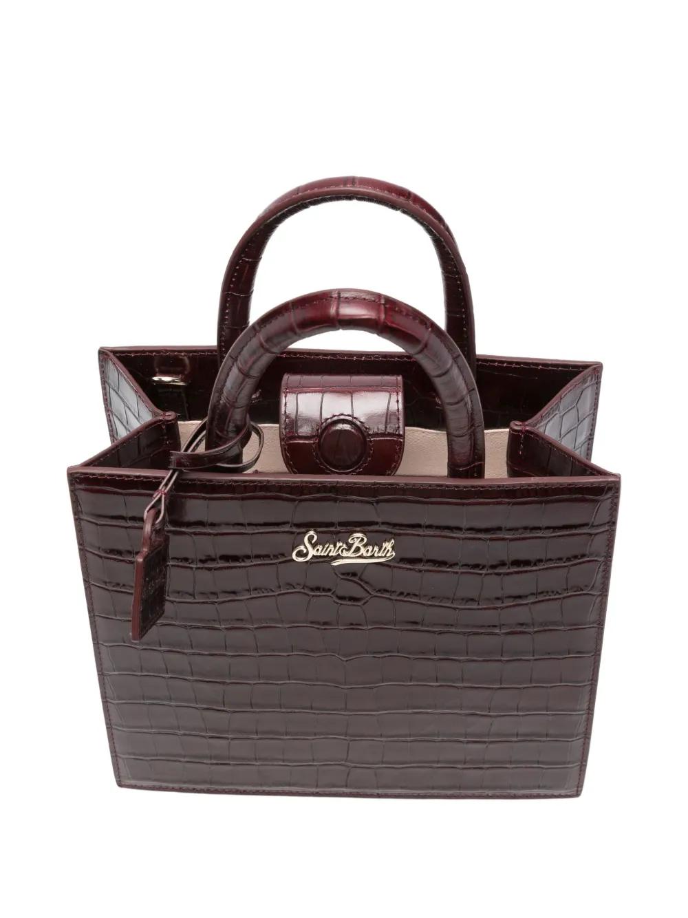 burgundy two top handles detachable shoulder bag magnetic fastening