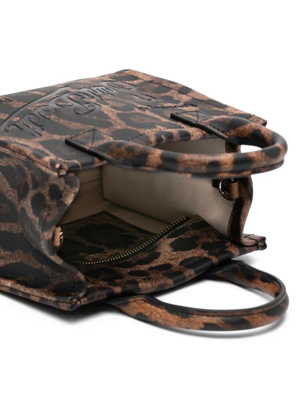 brown leopard print top handle shoulder strap top zip fastening internal zip pocket