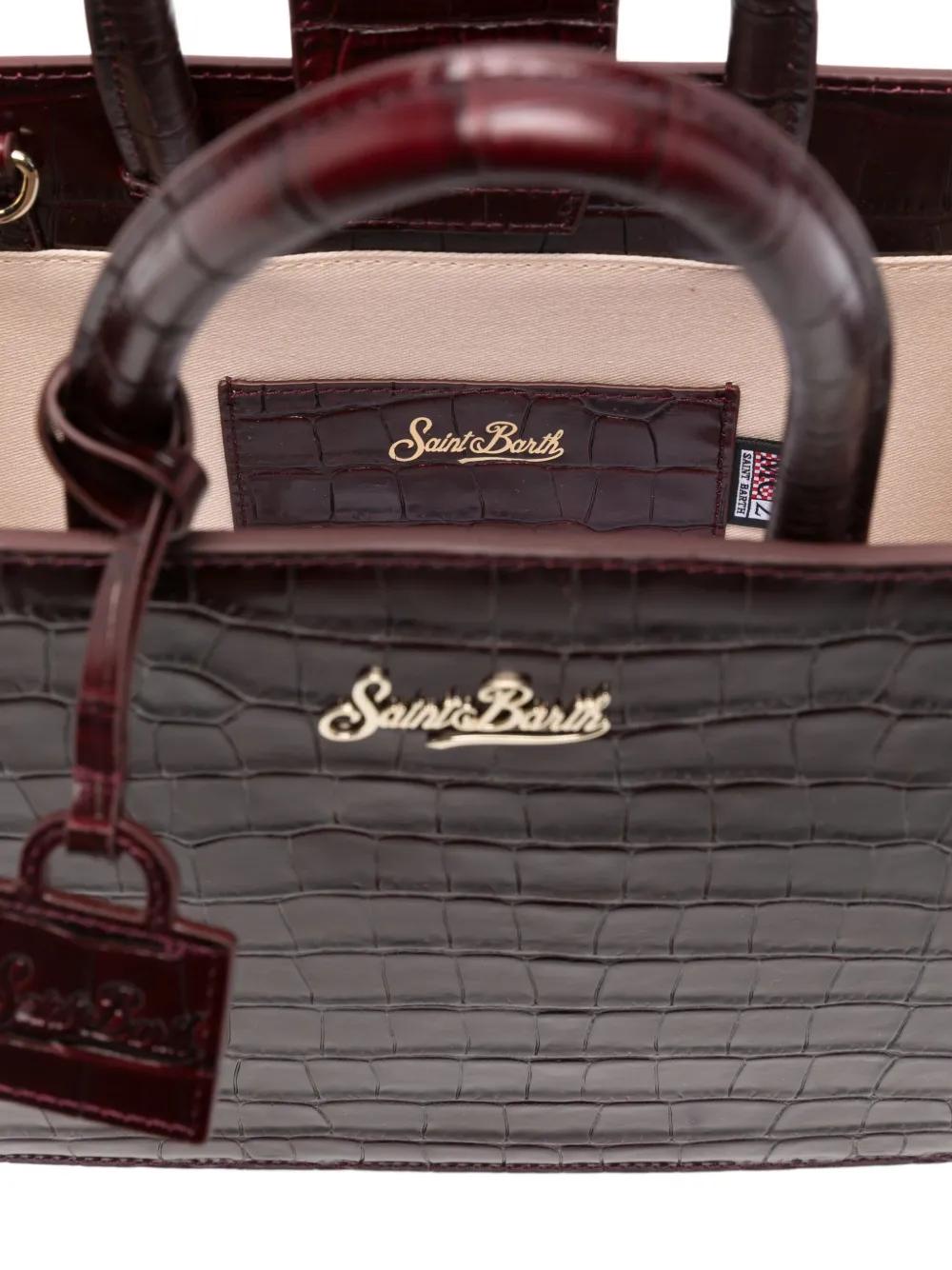 bordeaux embossed crocodile effect top handles detachable shoulder strap logo lettering logo tag