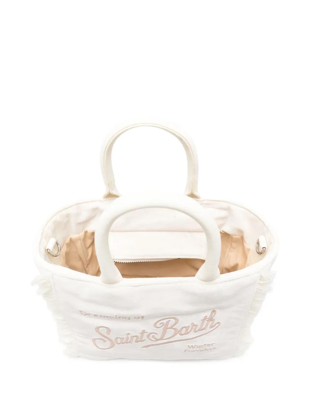 off-white top handle fringed trim embroidered detail shoulder strap internal zip pocket