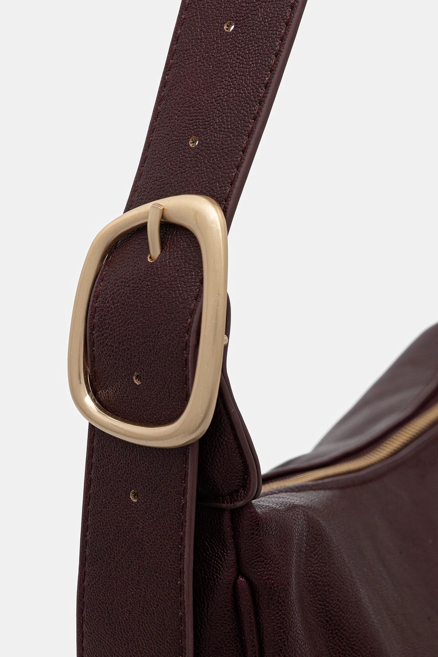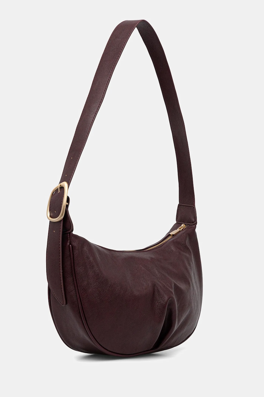 - Zapięcie na suwak. - Kieszonka wewnętrzna zapinana na suwak. - Wsuwane kieszonki wewnętrzne. - Nieodpinany pasek z regulacją. - Model z podszewką. - Nie mieści formatu A4. - Głębokość: 8 cm. - Wysokość: 20 cm. - Szerokość u podstawy: 27 cm.
