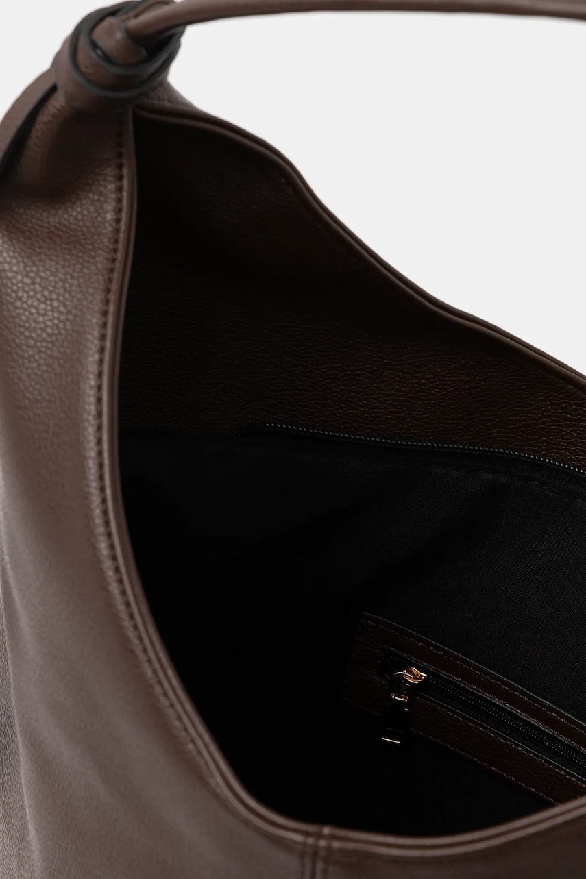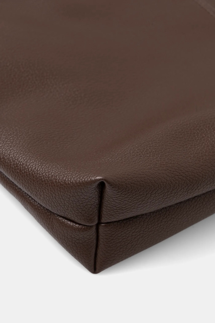 - Zapięcie na suwak. - Kieszonka wewnętrzna zapinana na suwak. - Wsuwane kieszonki wewnętrzne. - Nieodpinany pasek bez regulacji. - Model z podszewką. - Mieści format A4. - Głębokość: 7 cm. - Wysokość: 34 cm. - Szerokość u podstawy: 40 cm.