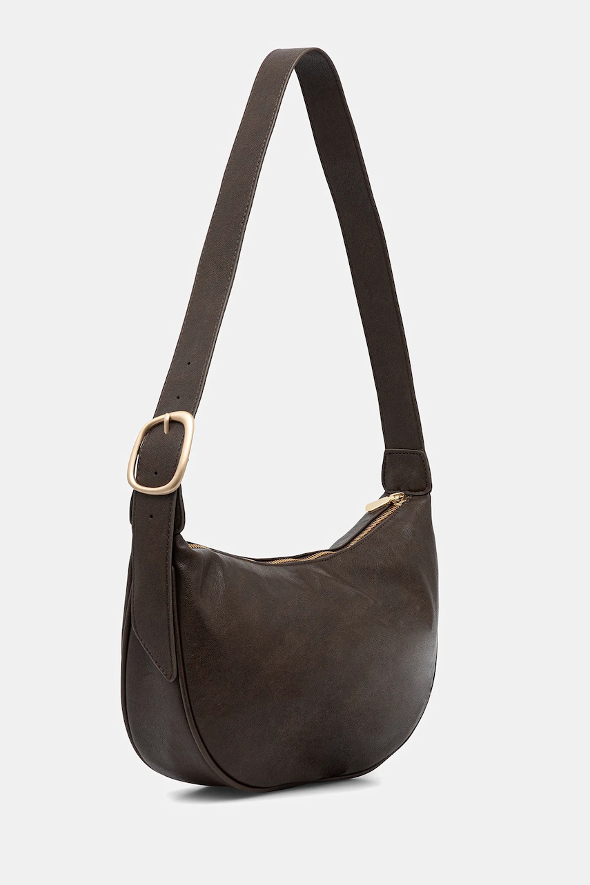 - Zapięcie na suwak. - Kieszonka wewnętrzna zapinana na suwak. - Wsuwane kieszonki wewnętrzne. - Nieodpinany pasek z regulacją. - Model z podszewką. - Nie mieści formatu A4. - Głębokość: 8 cm. - Wysokość: 20 cm. - Szerokość u podstawy: 27 cm.