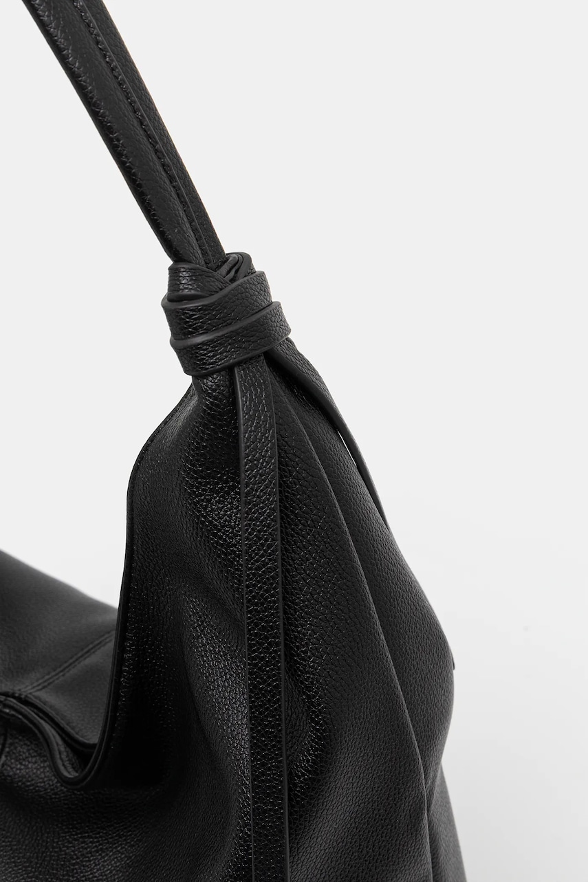 - Zapięcie na suwak. - Kieszonka wewnętrzna zapinana na suwak. - Wsuwane kieszonki wewnętrzne. - Nieodpinany pasek bez regulacji. - Model z podszewką. - Mieści format A4. - Głębokość: 7 cm. - Wysokość: 34 cm. - Szerokość u podstawy: 40 cm.
