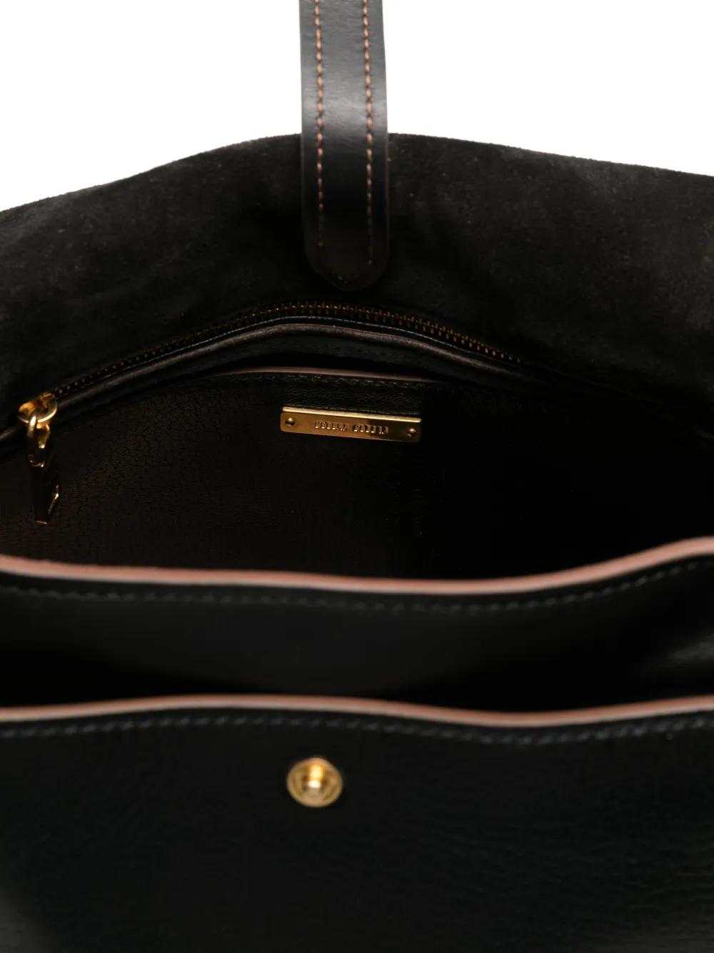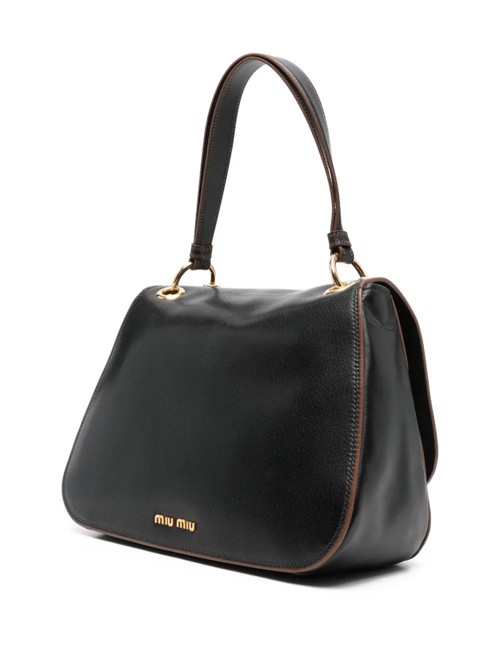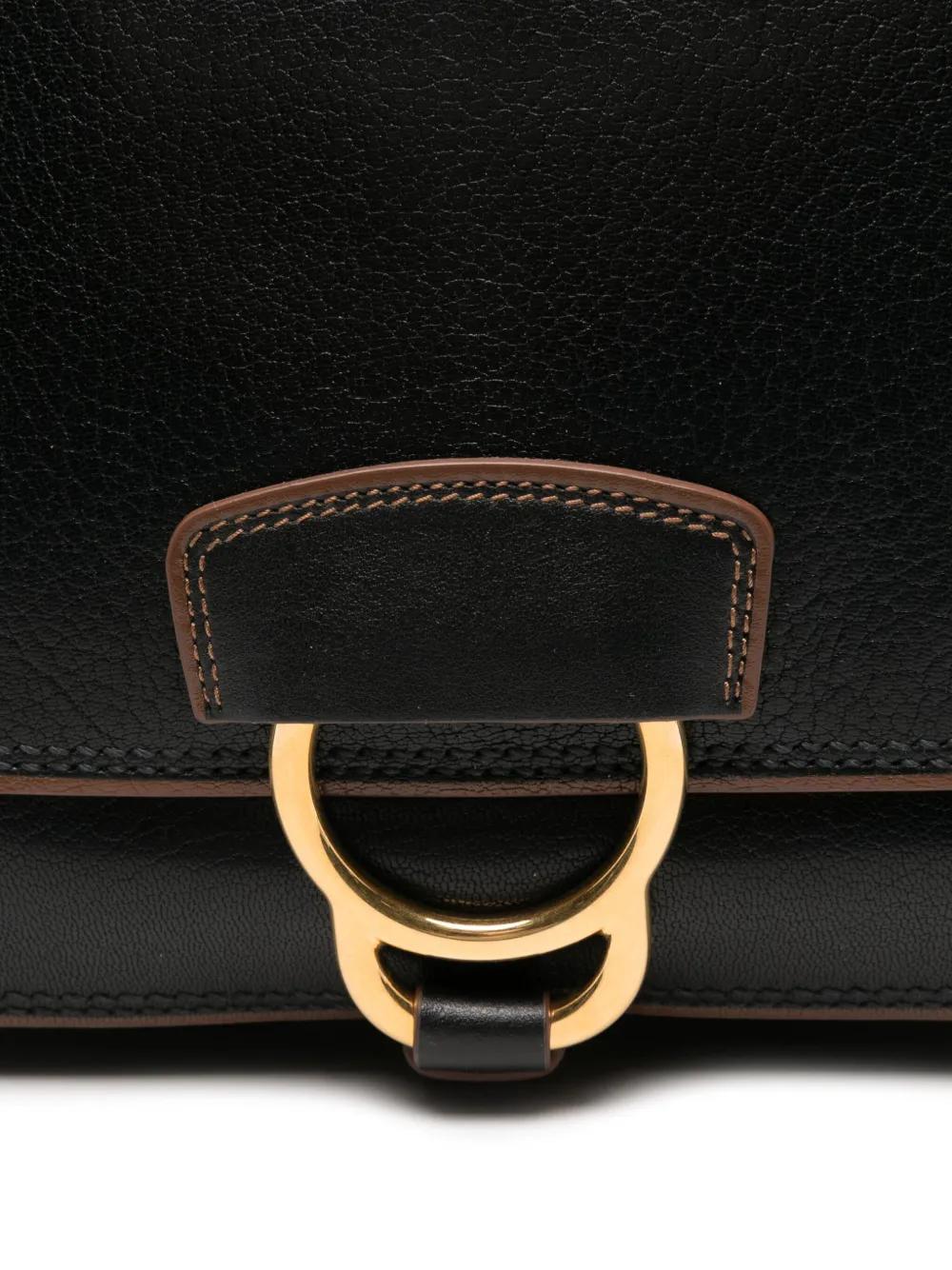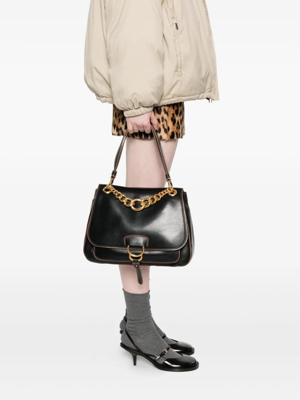 black leather gold-tone hardware chain-link strap single top handle press-stud fastening