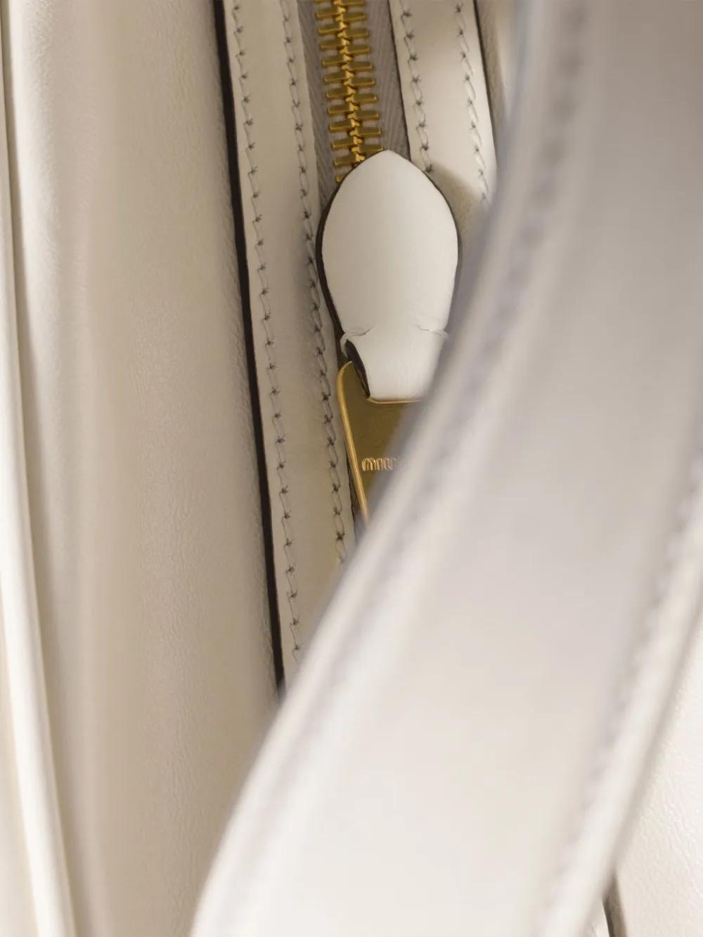 white leather construction top handles zip fastening logo plaque rectangular shape