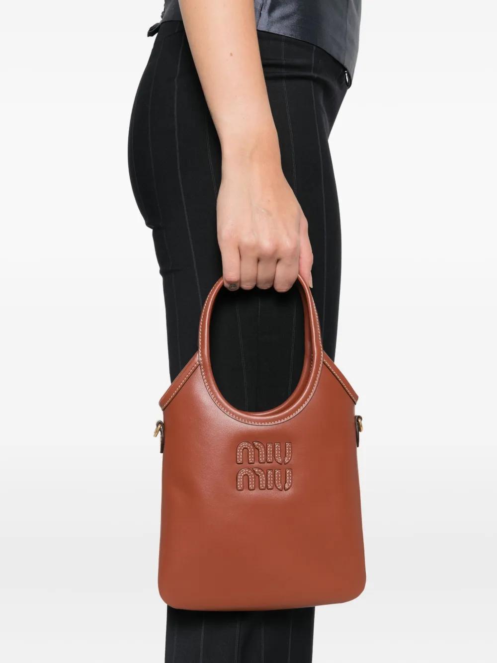 Miu Miu logo-appliqué top-handles shoulder bag - Brown