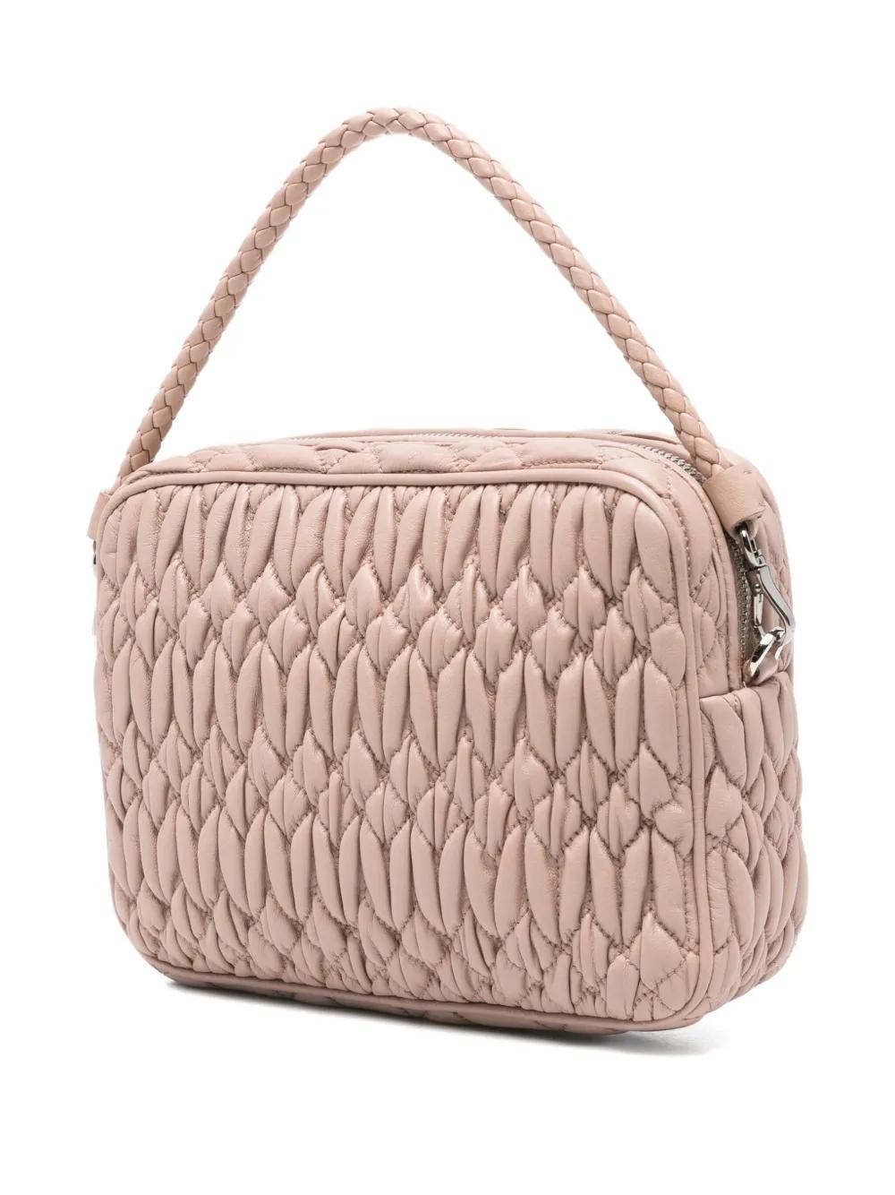 blush beige leather braided top handle crystal-embellished chain strap zip fastening logo detail