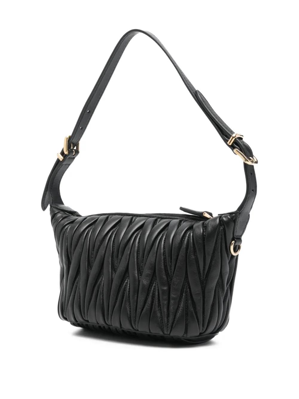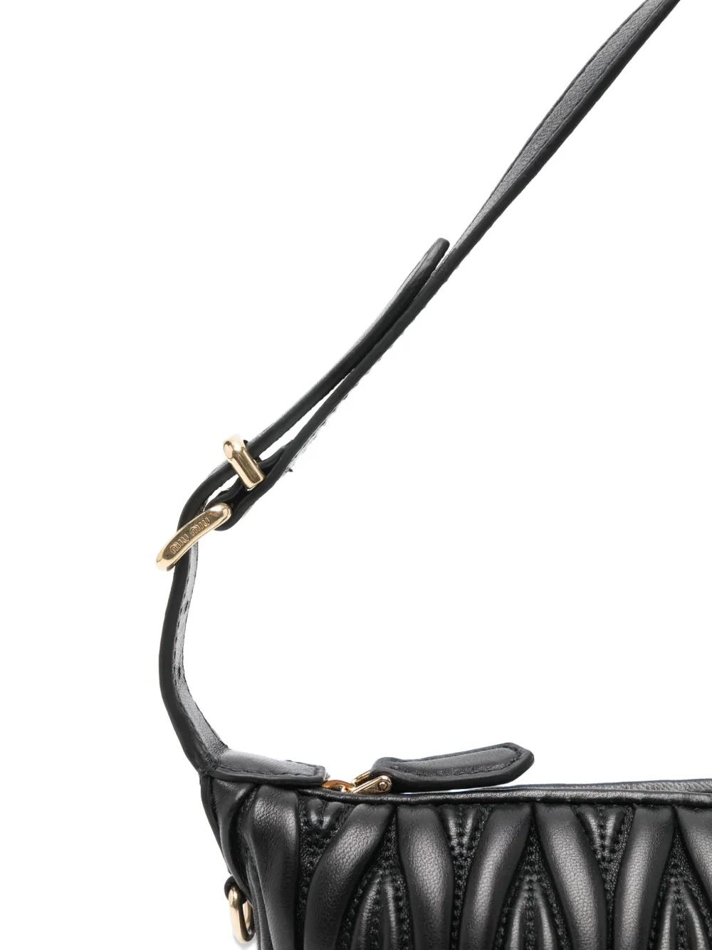 black matelassé effect adjustable shoulder strap gold-tone hardware zip fastening logo lettering