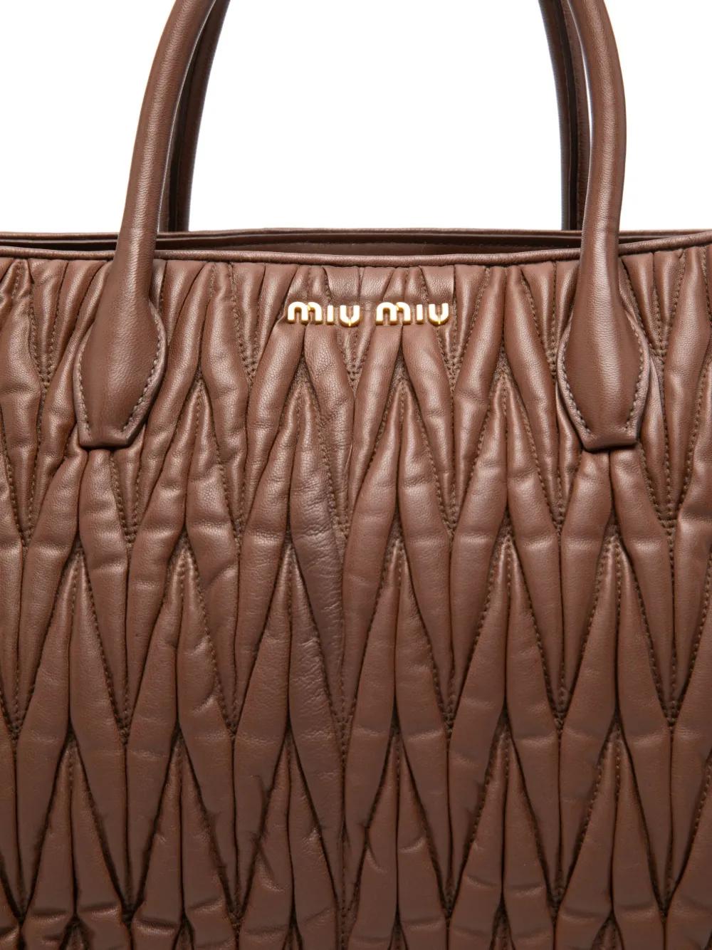 brown matelassé effect top handles detachable shoulder strap gold-tone logo lettering magnetic fastening