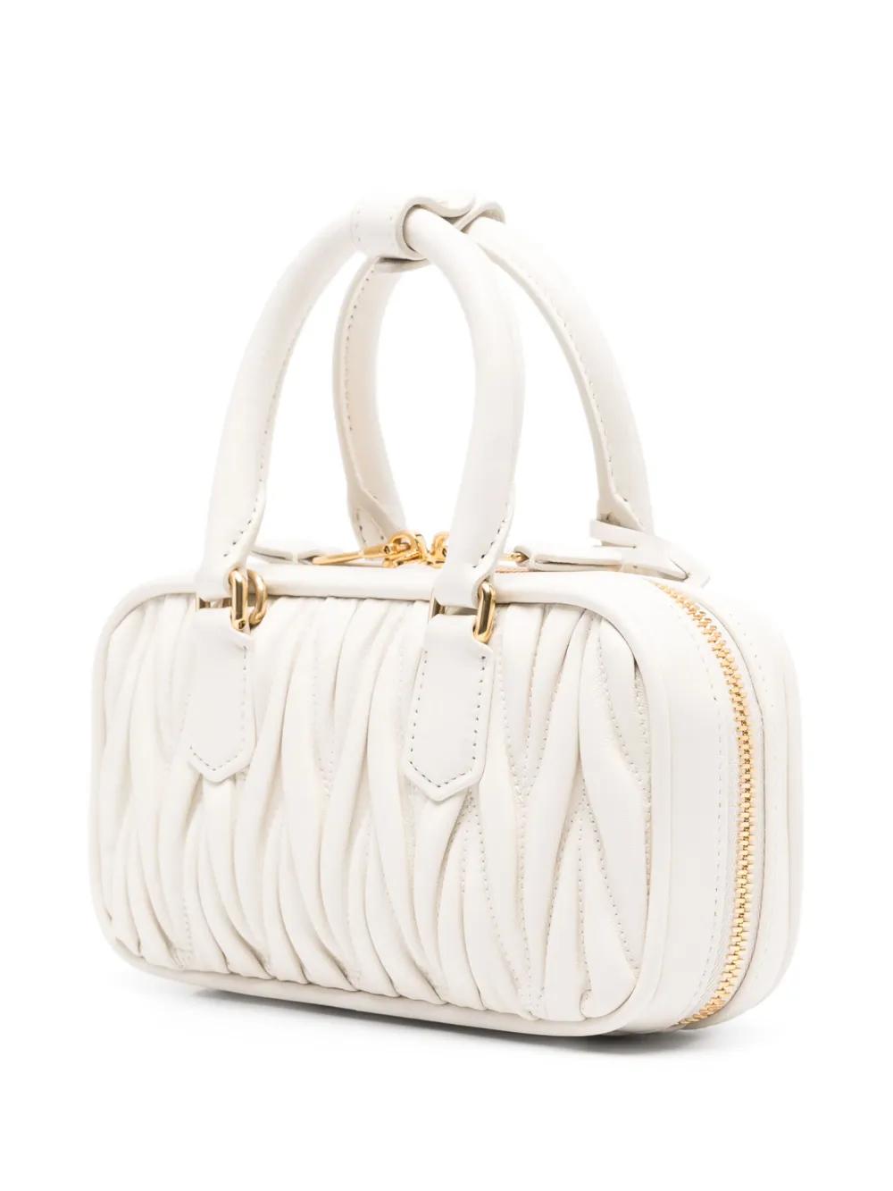 white top zip fastening two rolled top handles adjustable detachable shoulder strap This piece comes complete with a protective dust bag.