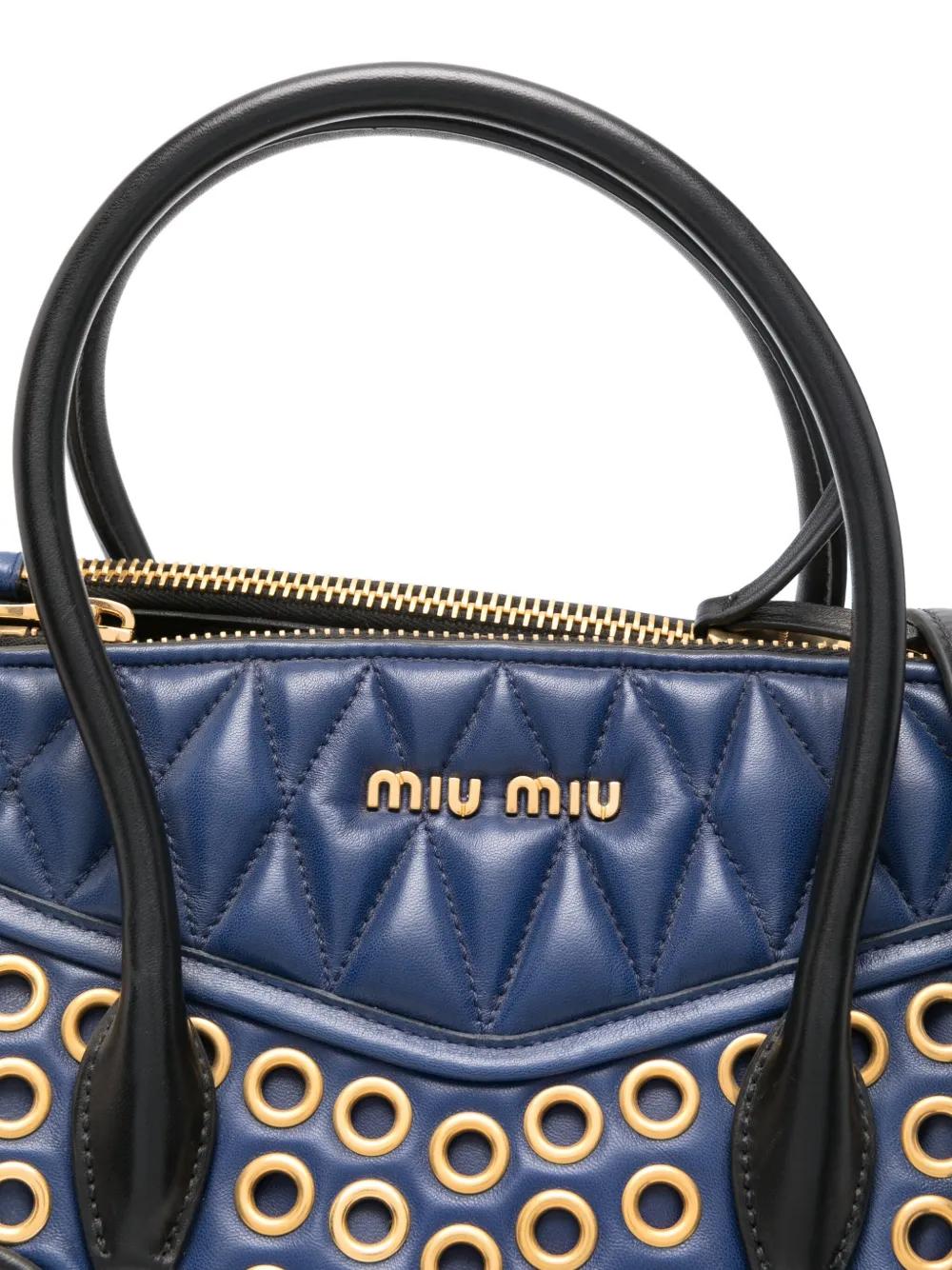 Miu Miu panelled quilted eyelet-detail tote bag - Blue