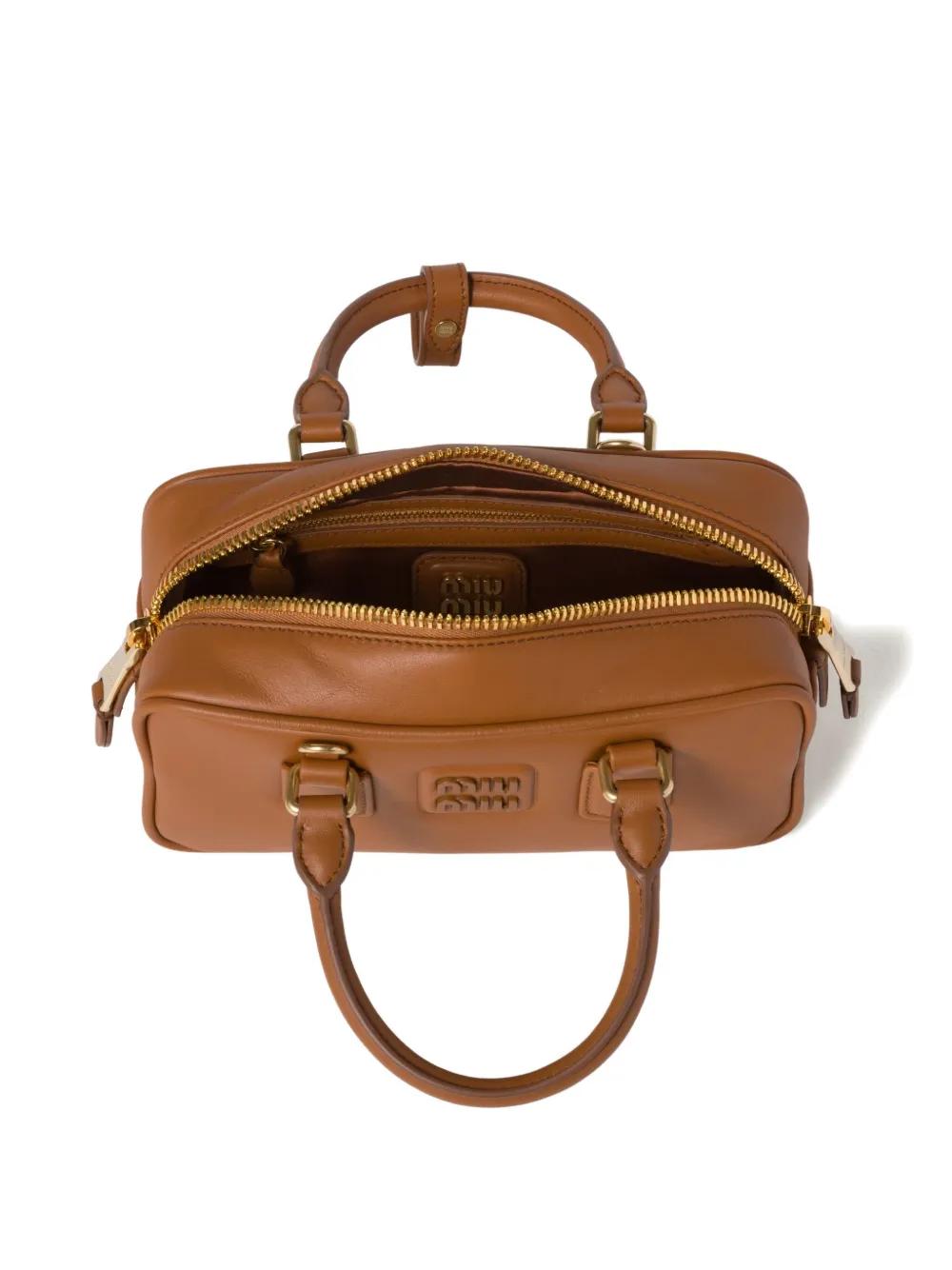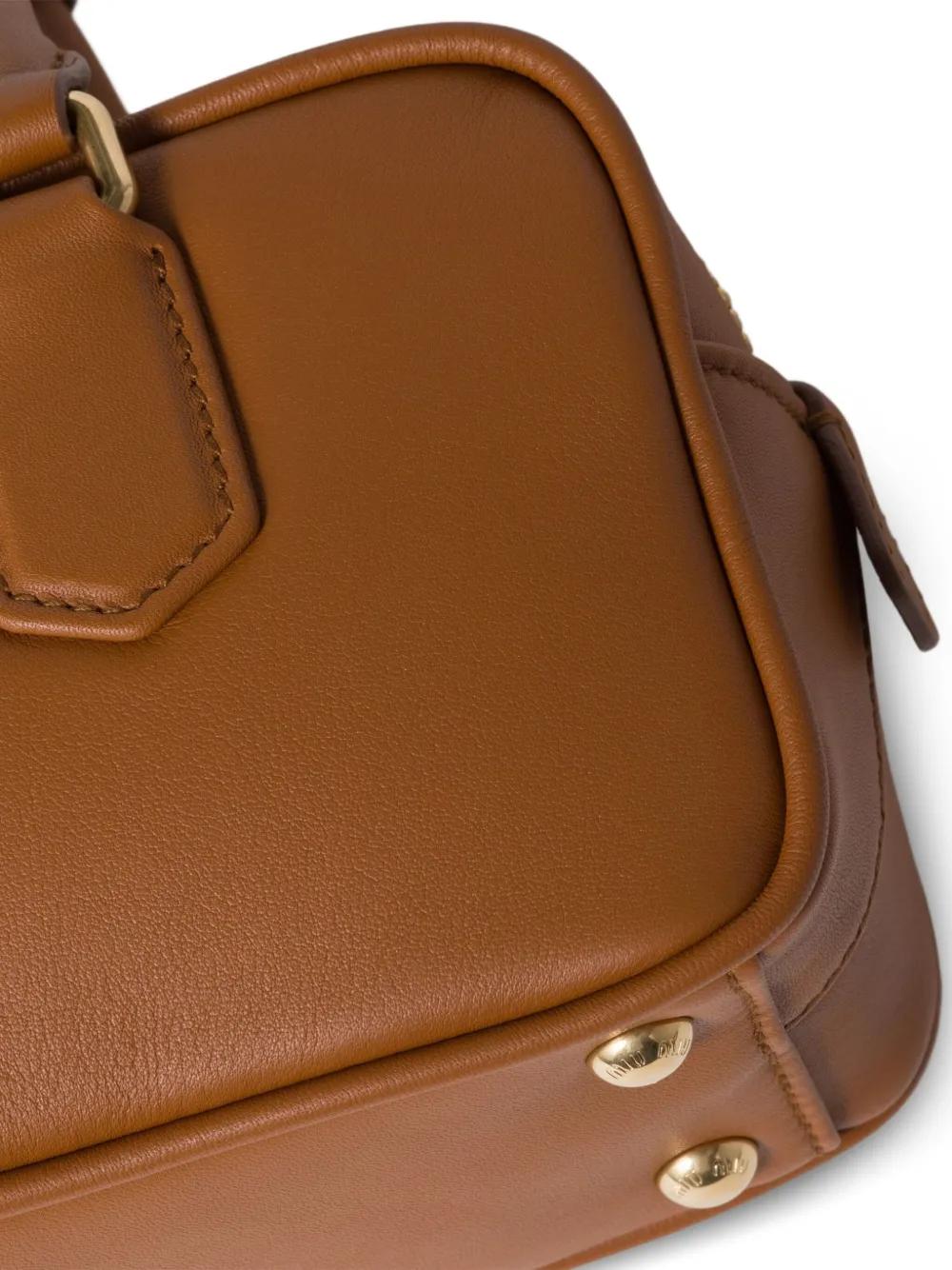 brown calf leather top handle zip fastening logo plaque detachable shoulder strap