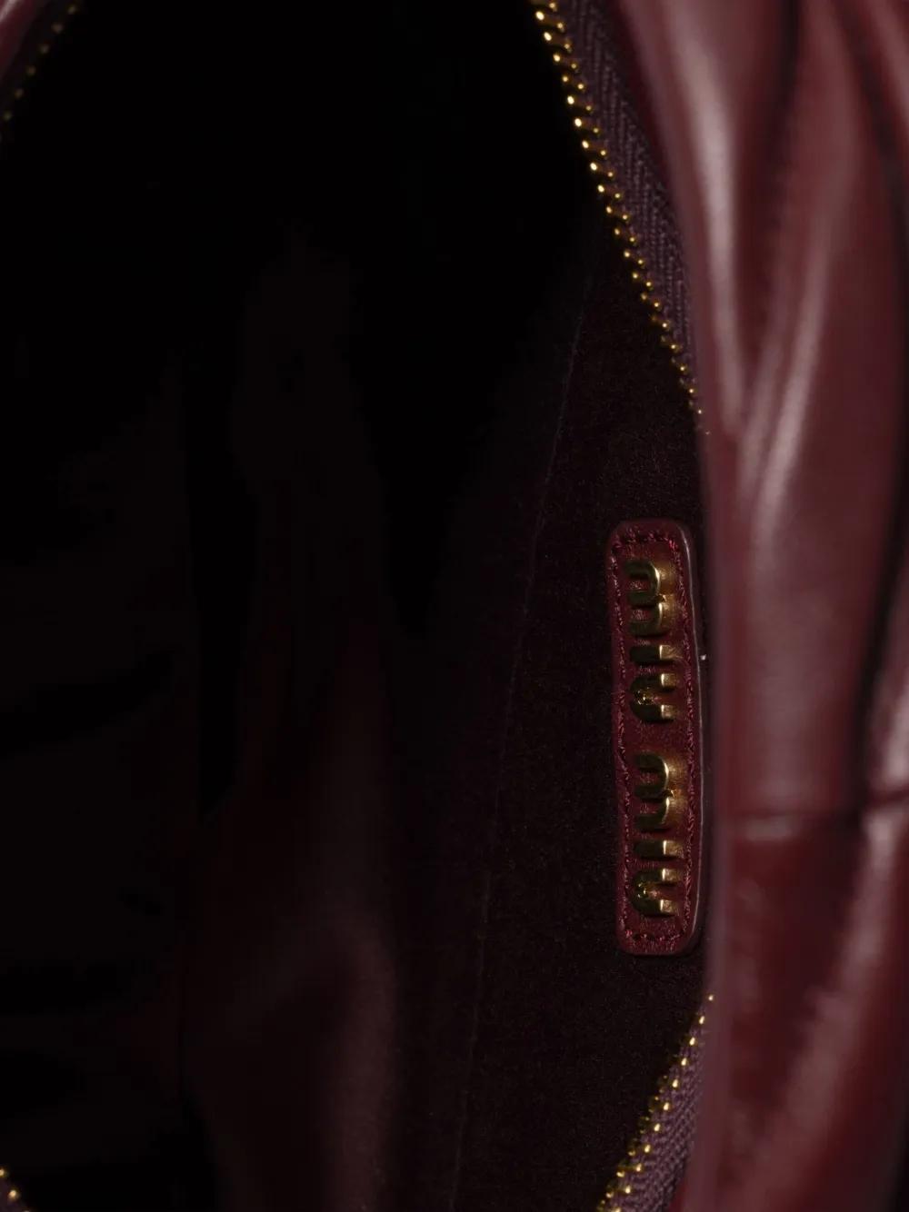 burgundy matelassé motif gold-tone hardware metal lettering logo zip closure