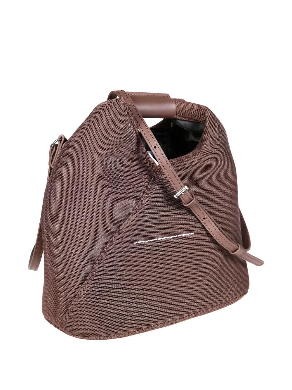 brown suede texture zip top fastening triangular base detail top handles folded design Please refer to the Size & Fit tab to learn more about this item's dimensions.