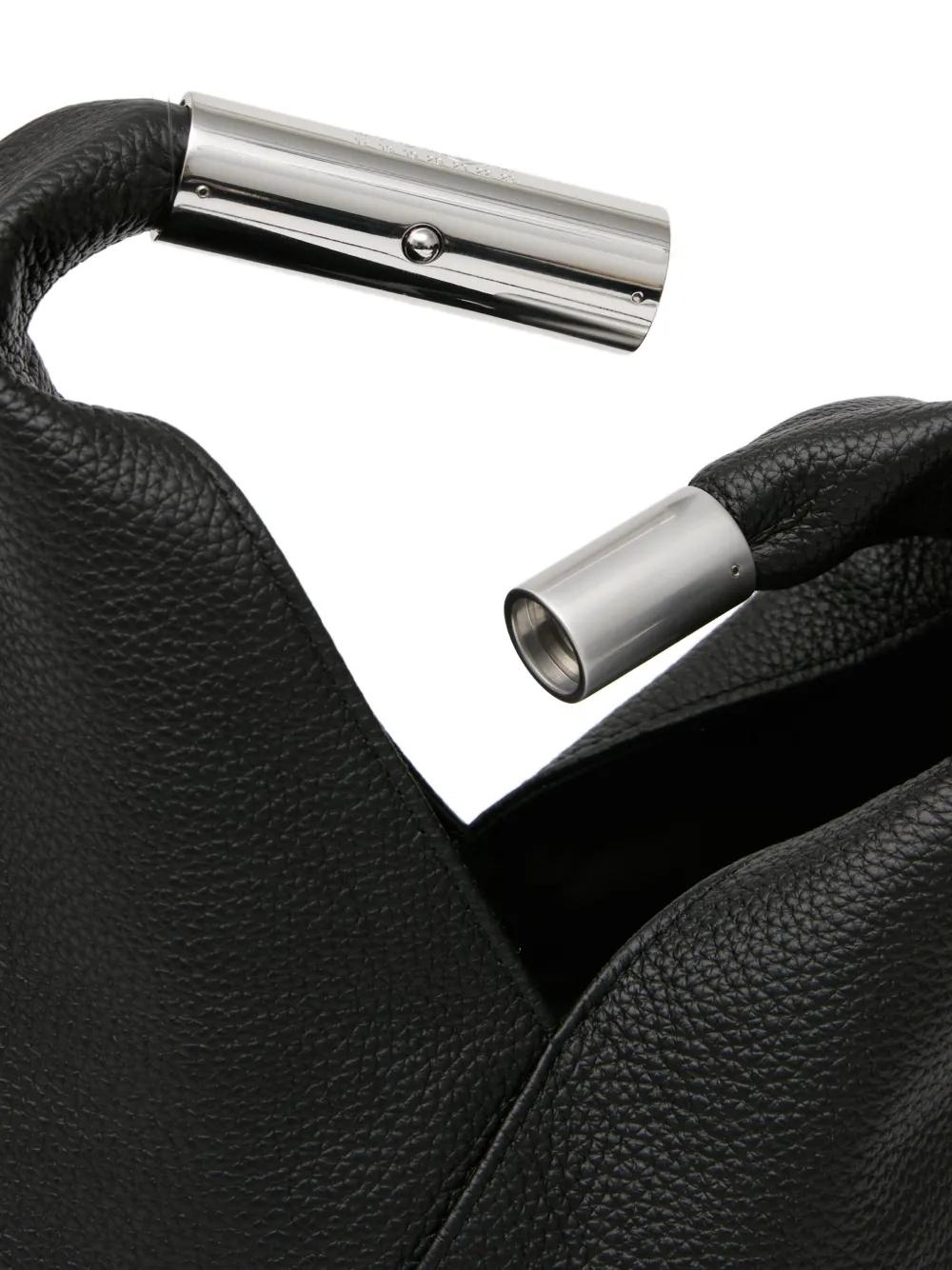 black grained leather top handle adjustable shoulder strap silver-tone hardware stitch detail