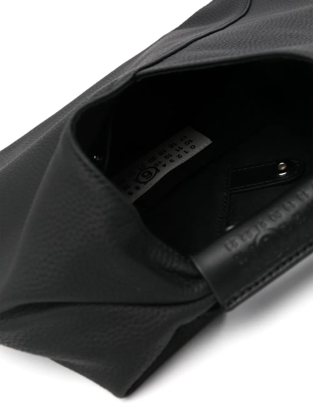 black calf leather pebbled texture press-seal fastening single top handle with signature numbers motif signature single-stitch logo to the rear main compartment internal slip pocket internal logo patch full lining