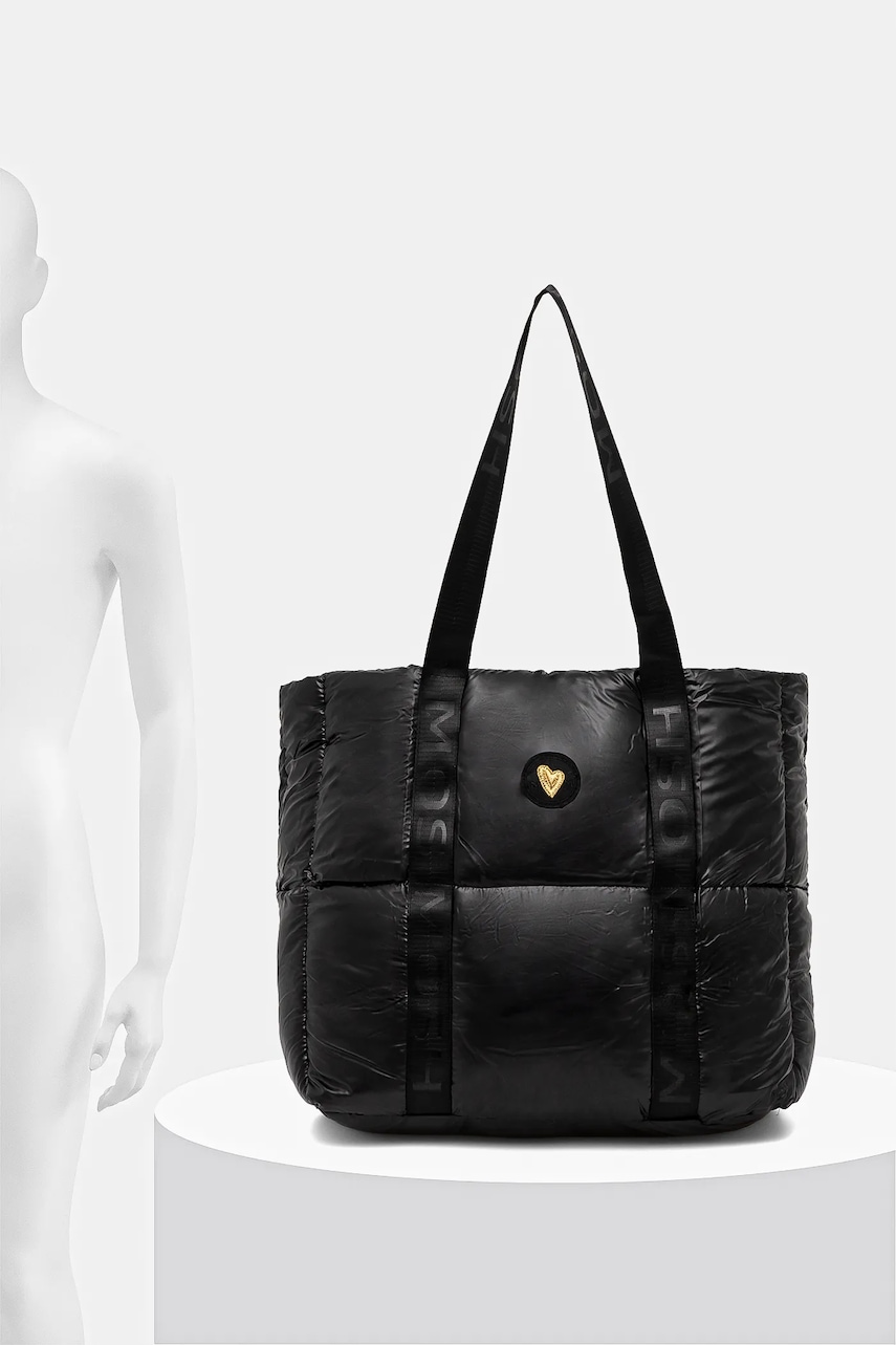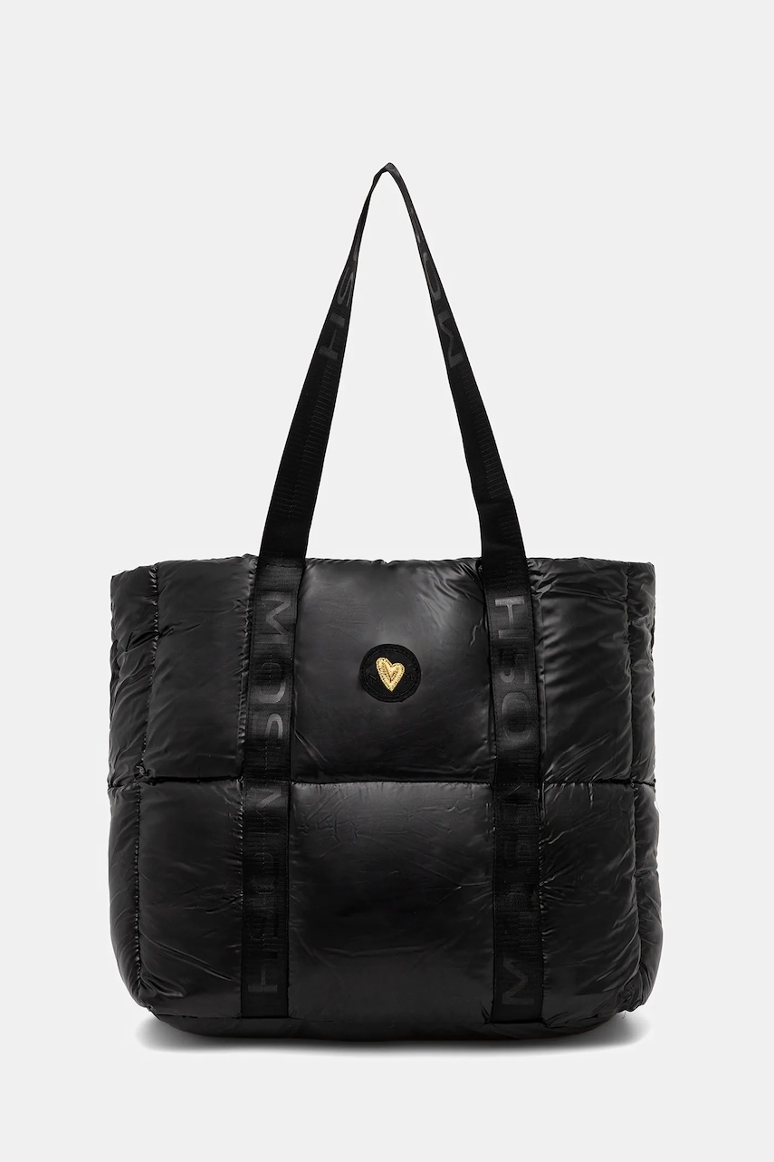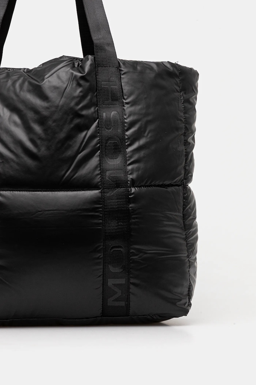 - Zapięcie na zatrzask. - Długie uchwyty dla komfortowego noszenia w dłoni lub na ramieniu. - Zapinana na suwak kieszonka wewnętrzna, która ułatwia bezpieczne przechowywanie telefonu lub innych drobiazgów. - Mieści format A4. - Model z podszewką. - Długość uchwytów: 68 cm. - Głębokość: 16 cm. - Wysokość: 36 cm. - Szerokość u podstawy: 41 cm.
