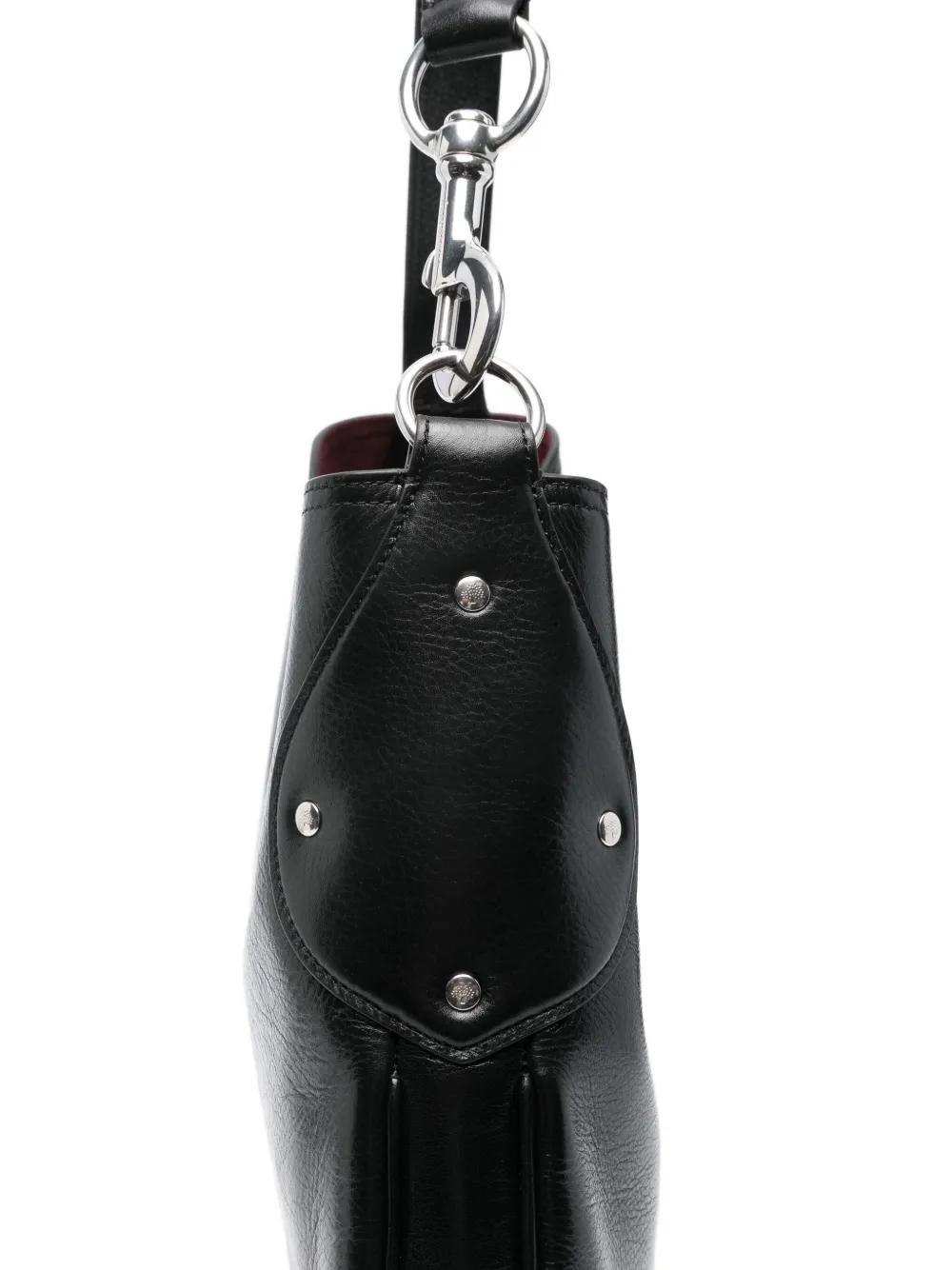 black top handle silver-tone hardware rivet detail internal slip pocket magnetic fastening