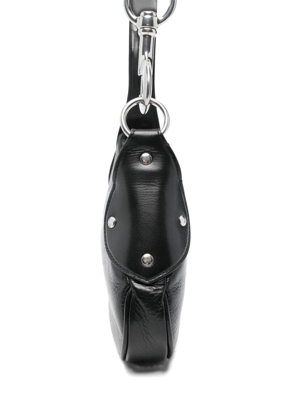 black top handle silver-tone hardware rivet detail zip fastening internal logo patch