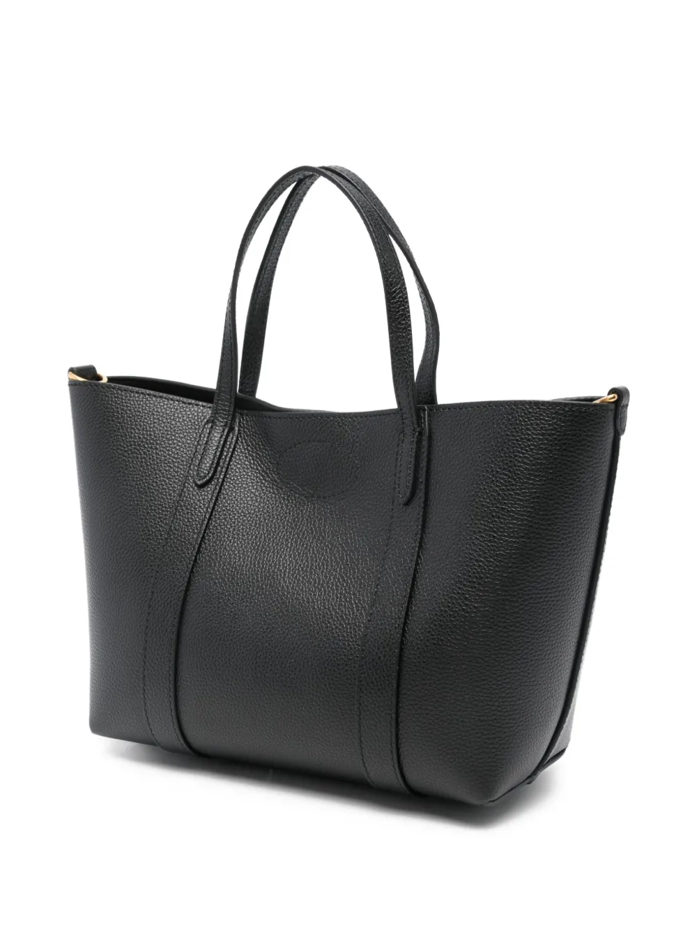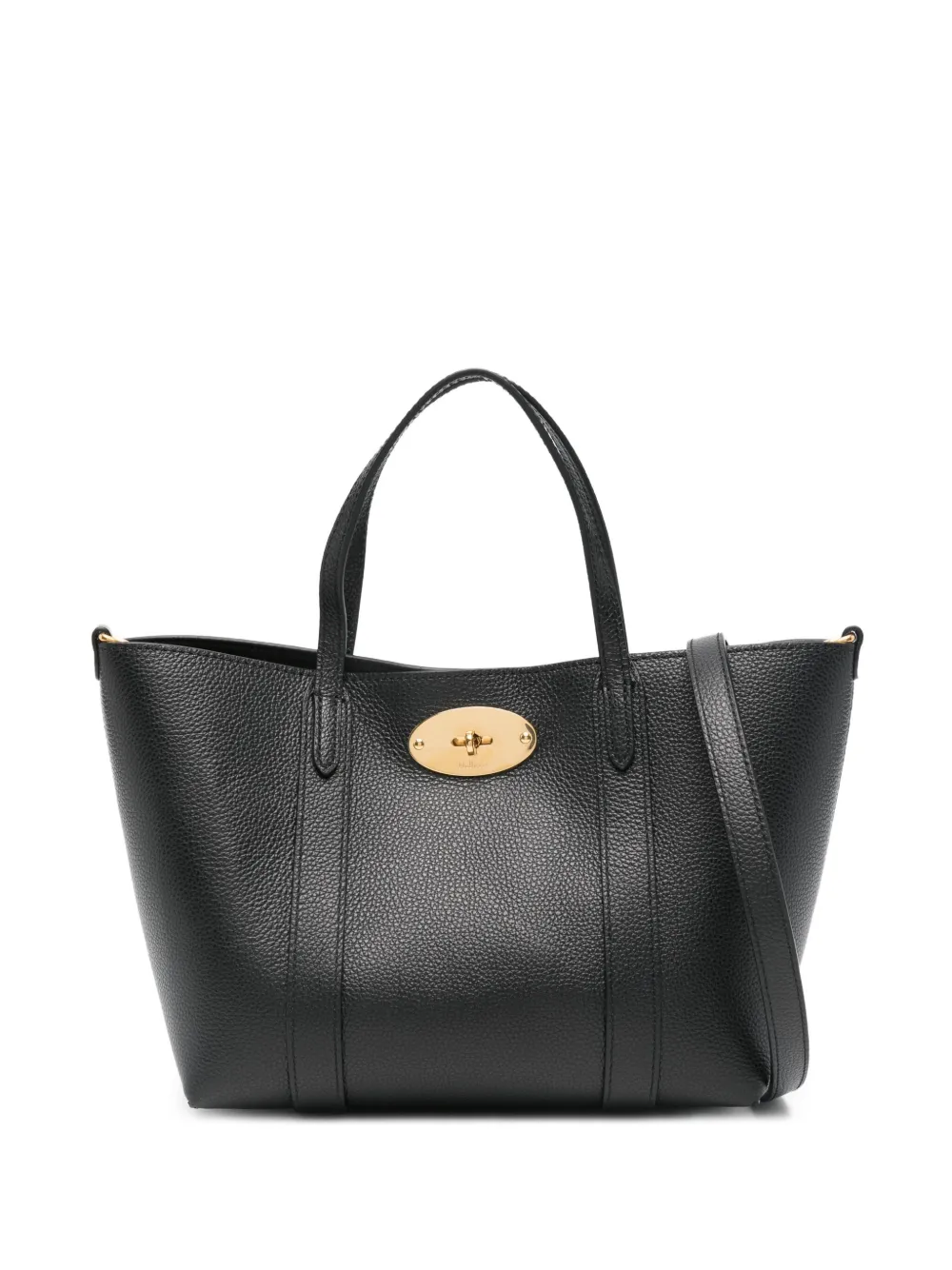 black pebbled leather top handles clasp fastening detachable shoulder strap