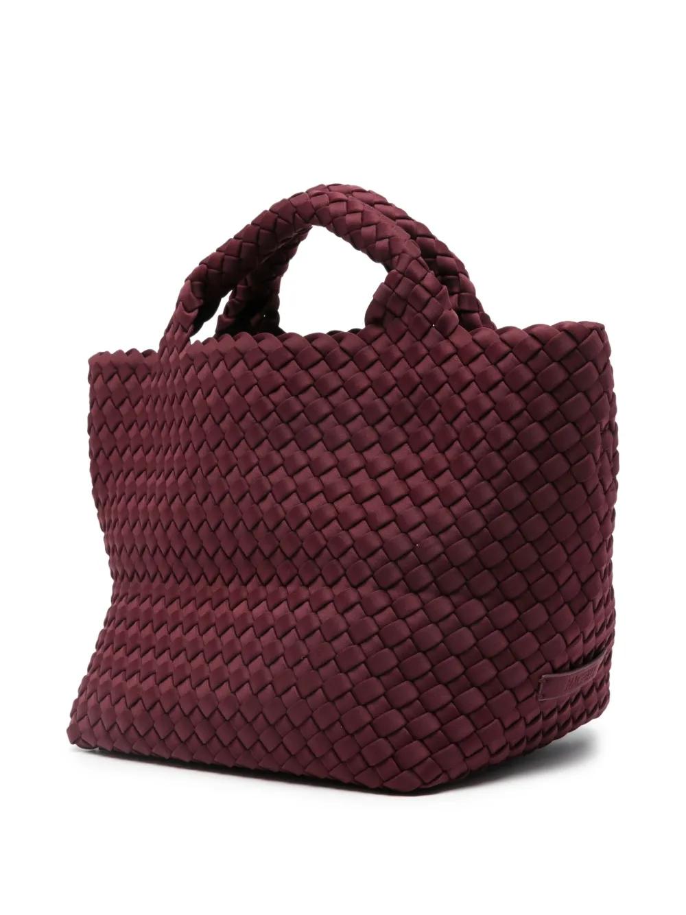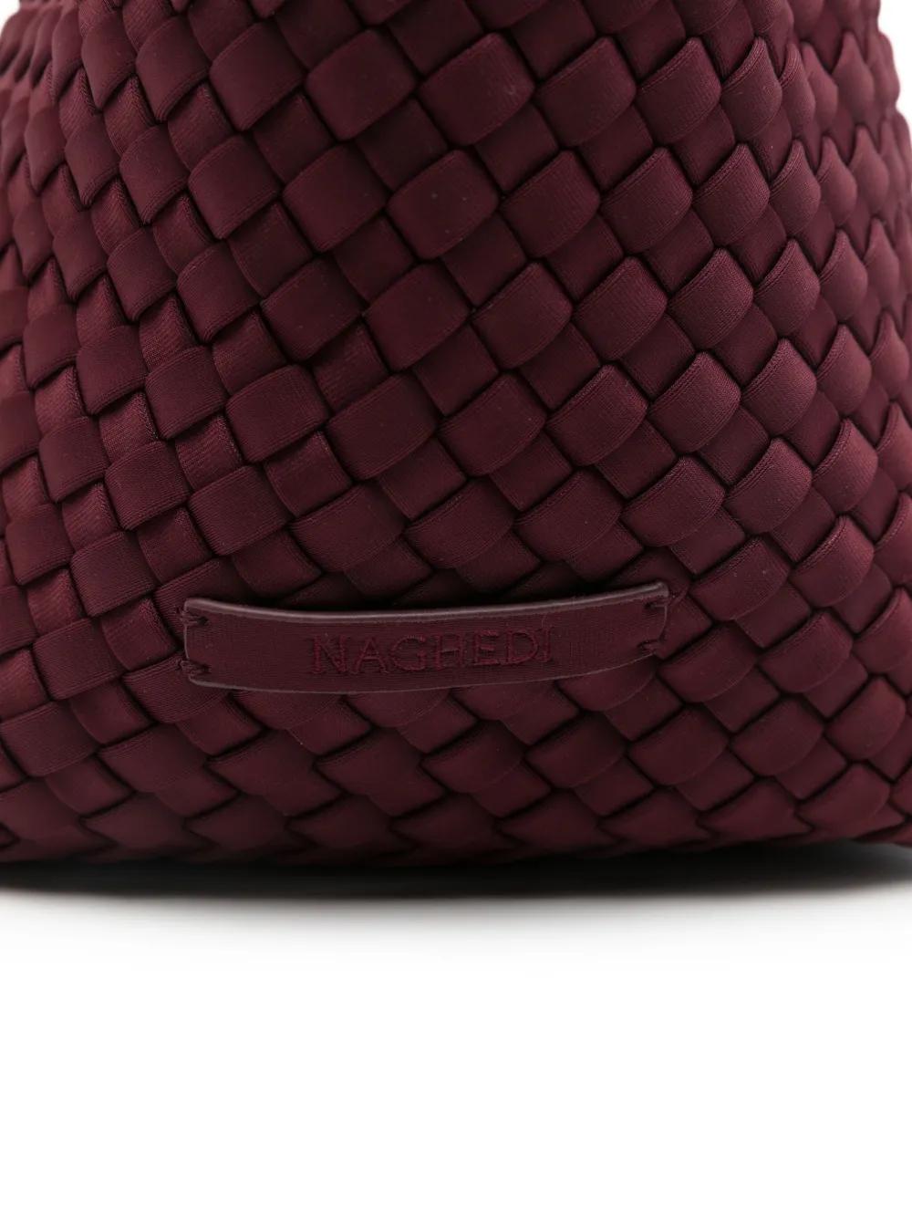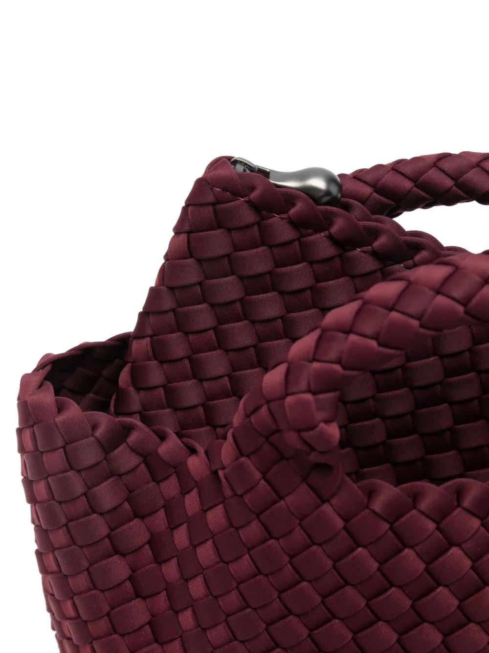 burgundy red woven design two top handles detachable shoulder strap main compartment