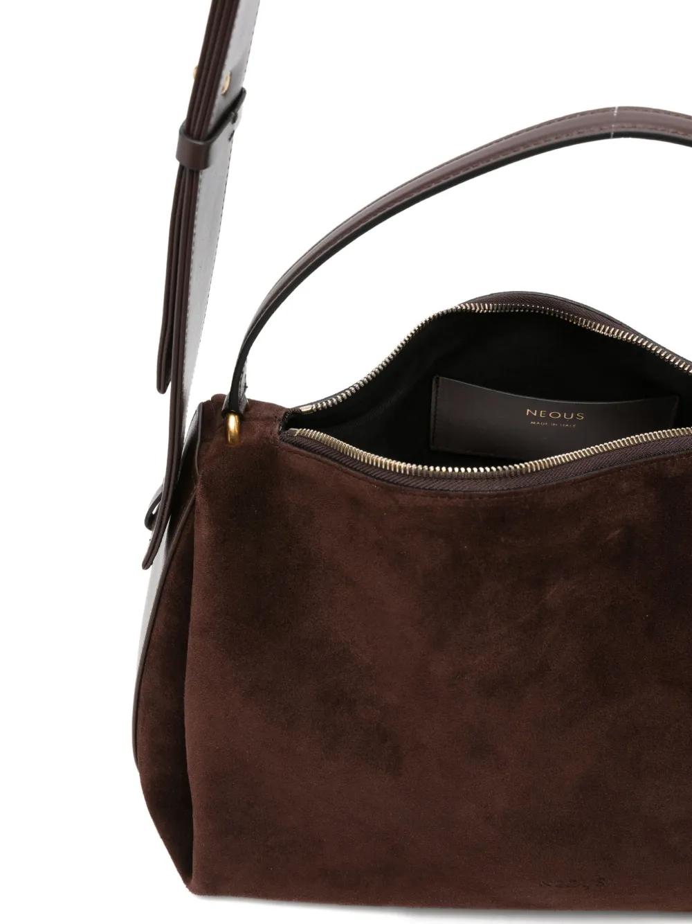 chocolate brown adjustable strap top zip fastening top handle This piece comes complete with a protective dust bag.