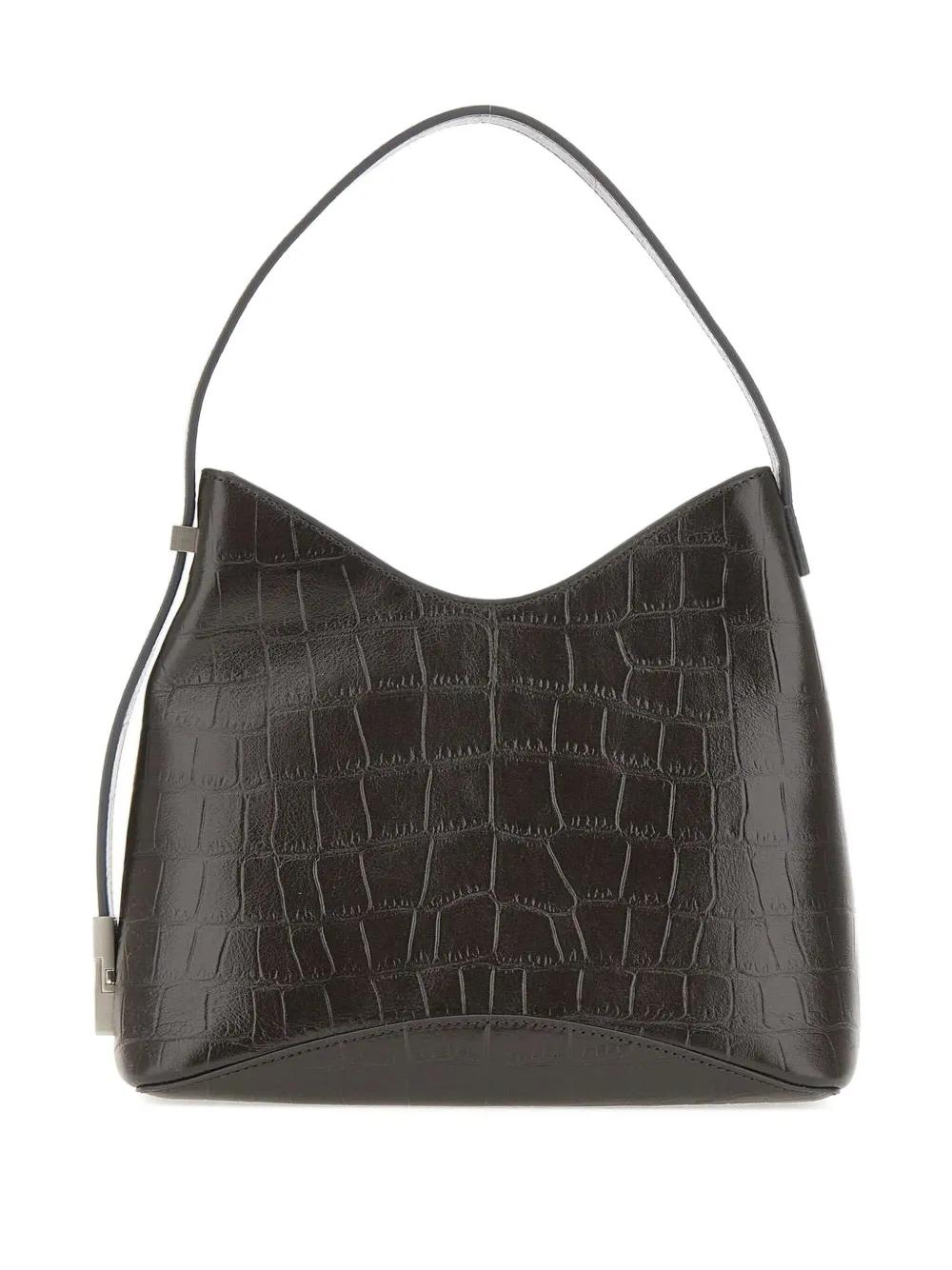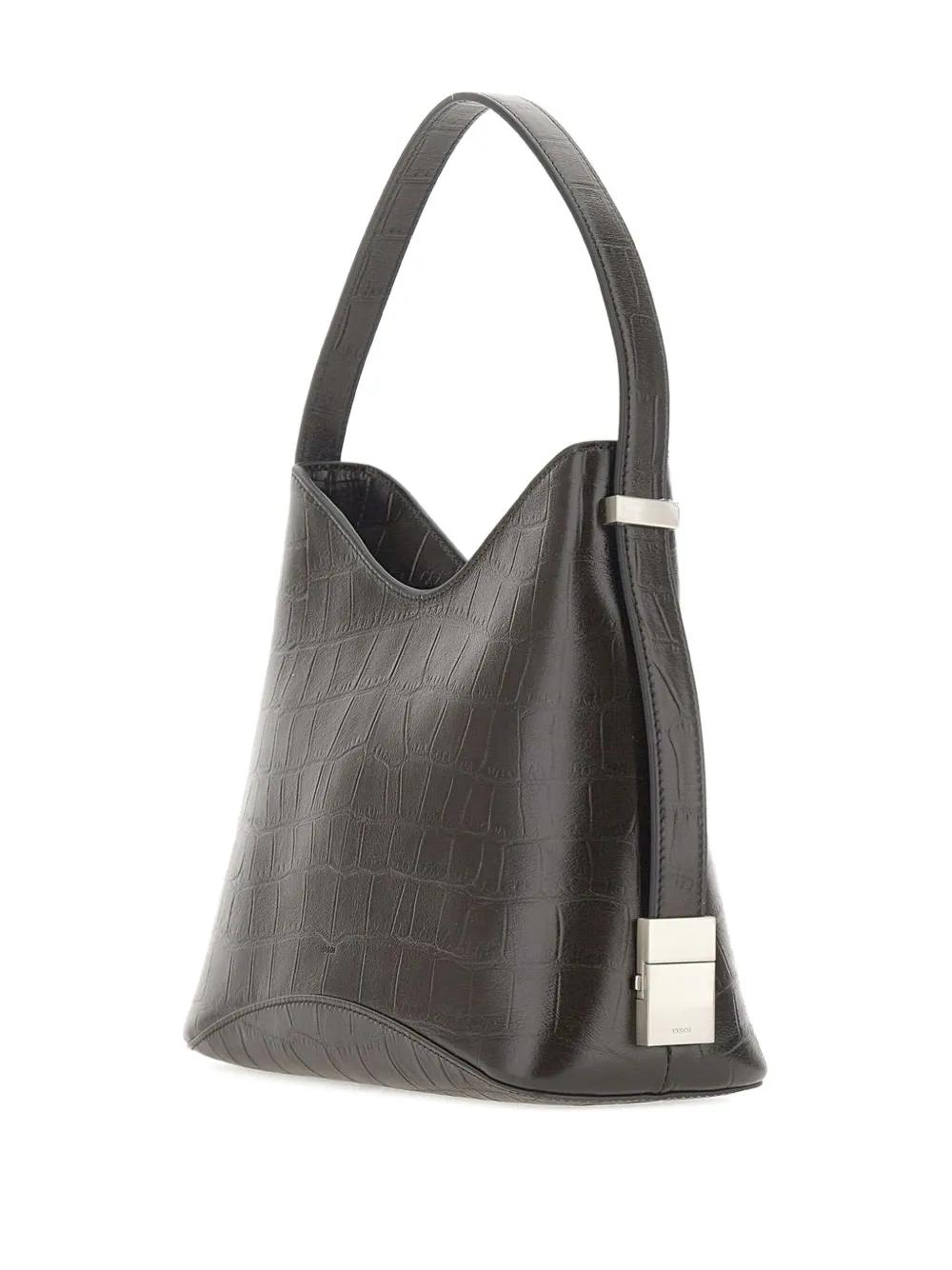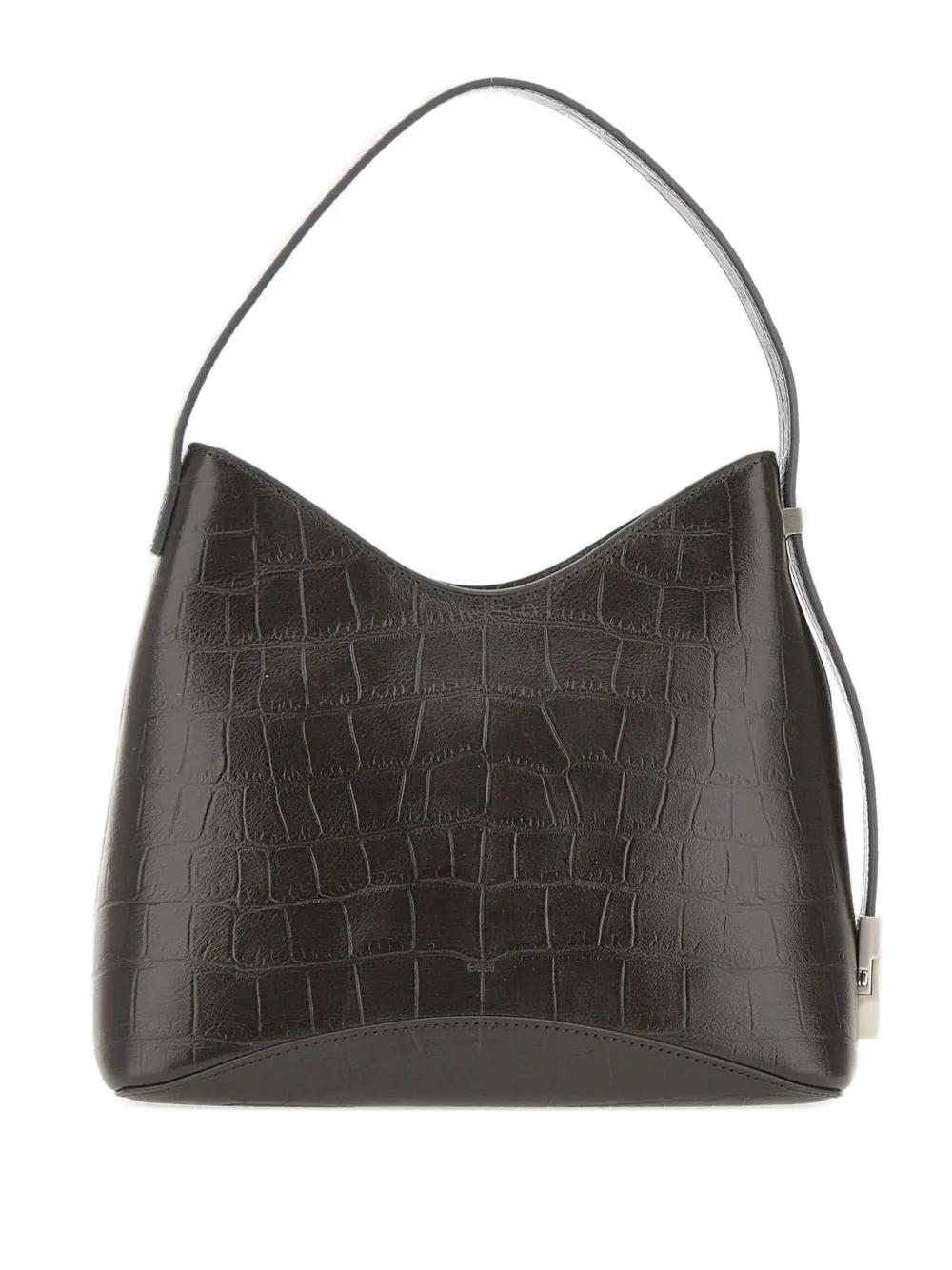 brown crocodile embossed effect adjustable top handle zip closure silver hardware internal pocket