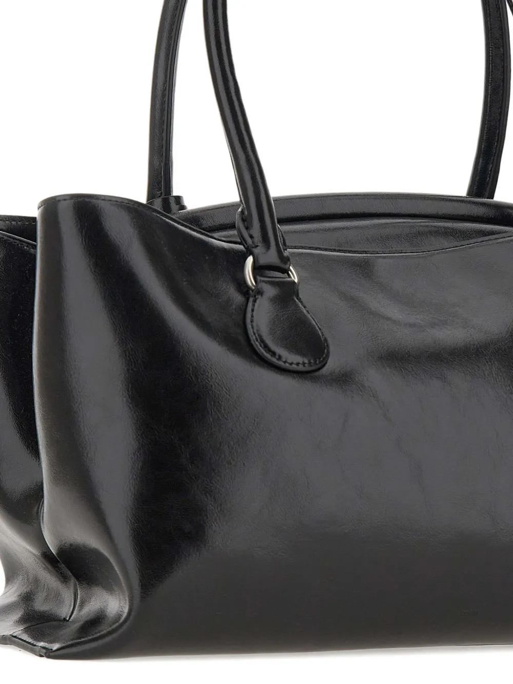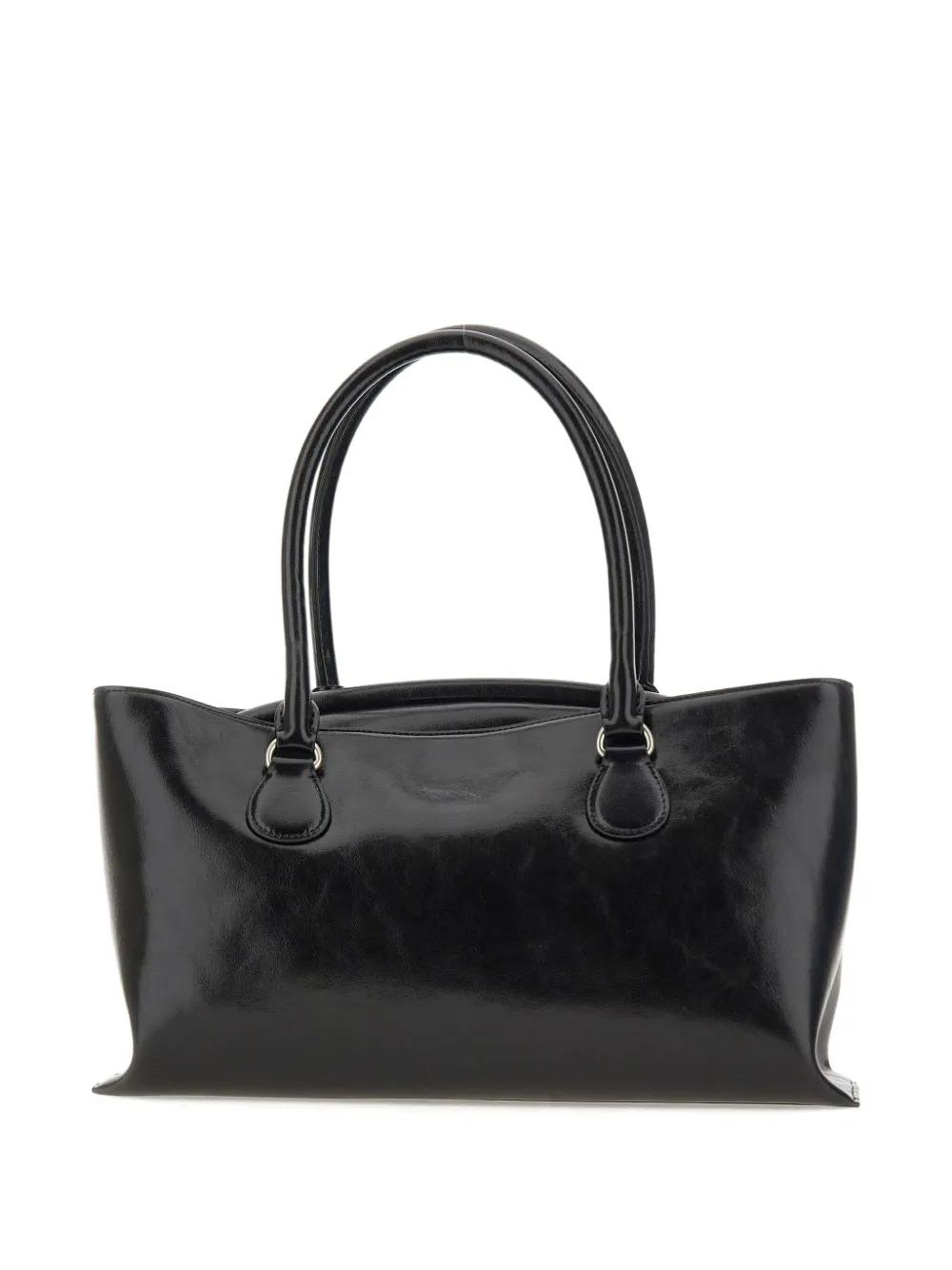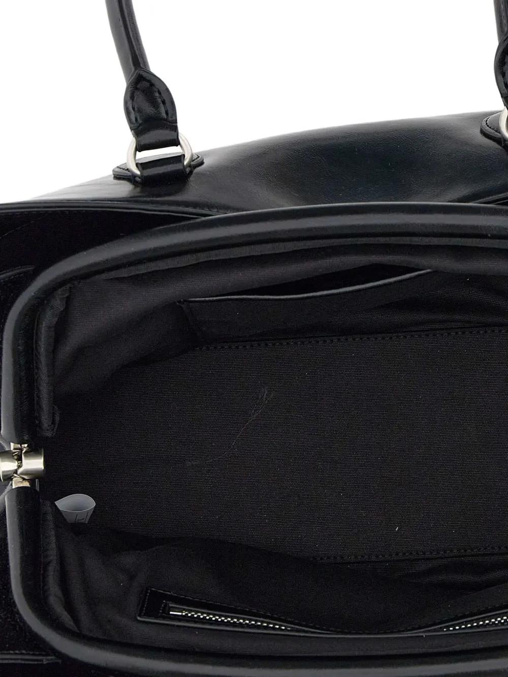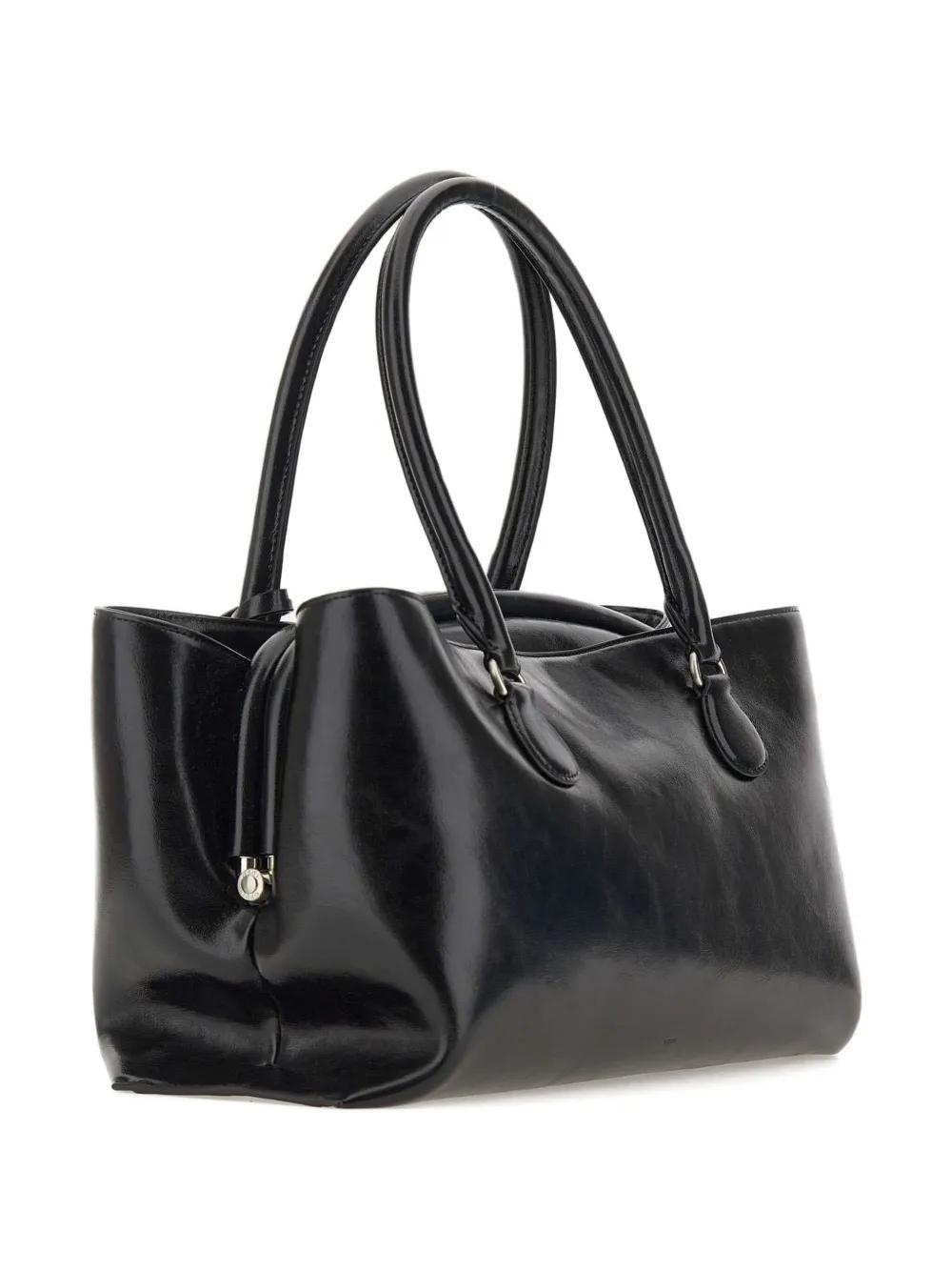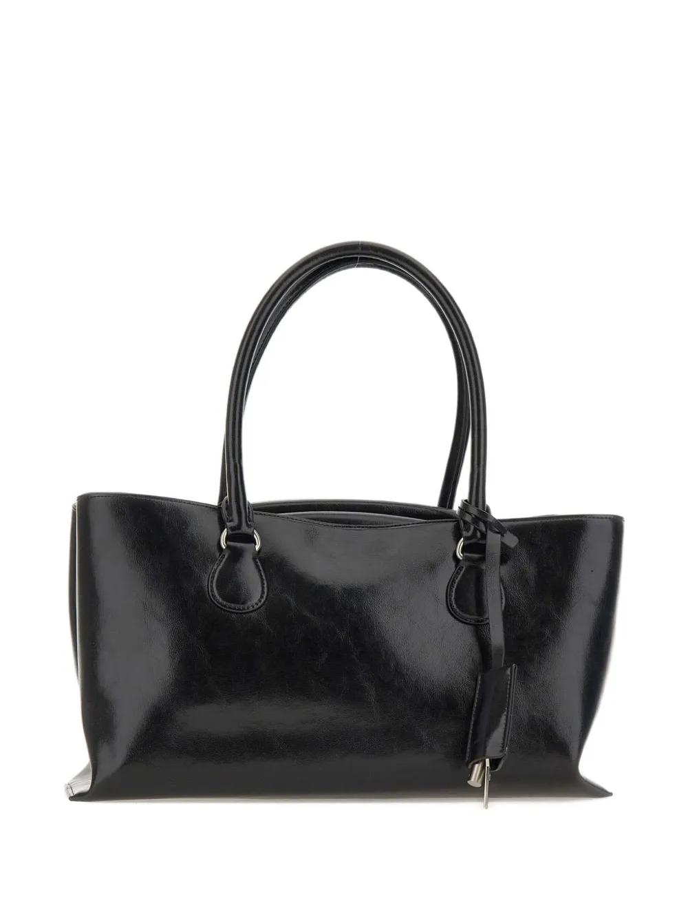 black double top handle silver-tone hardware magnetic closure hanging keyfob