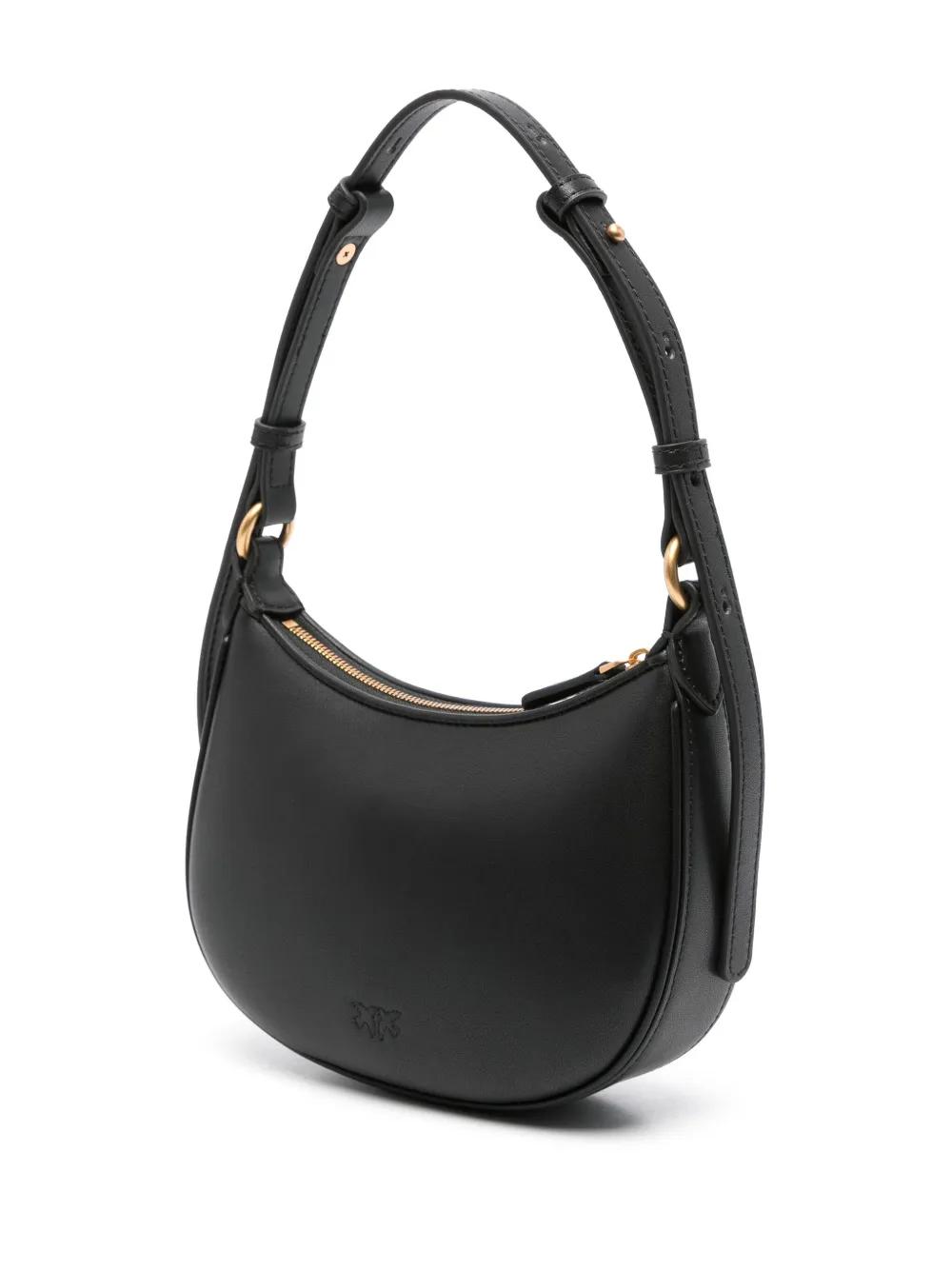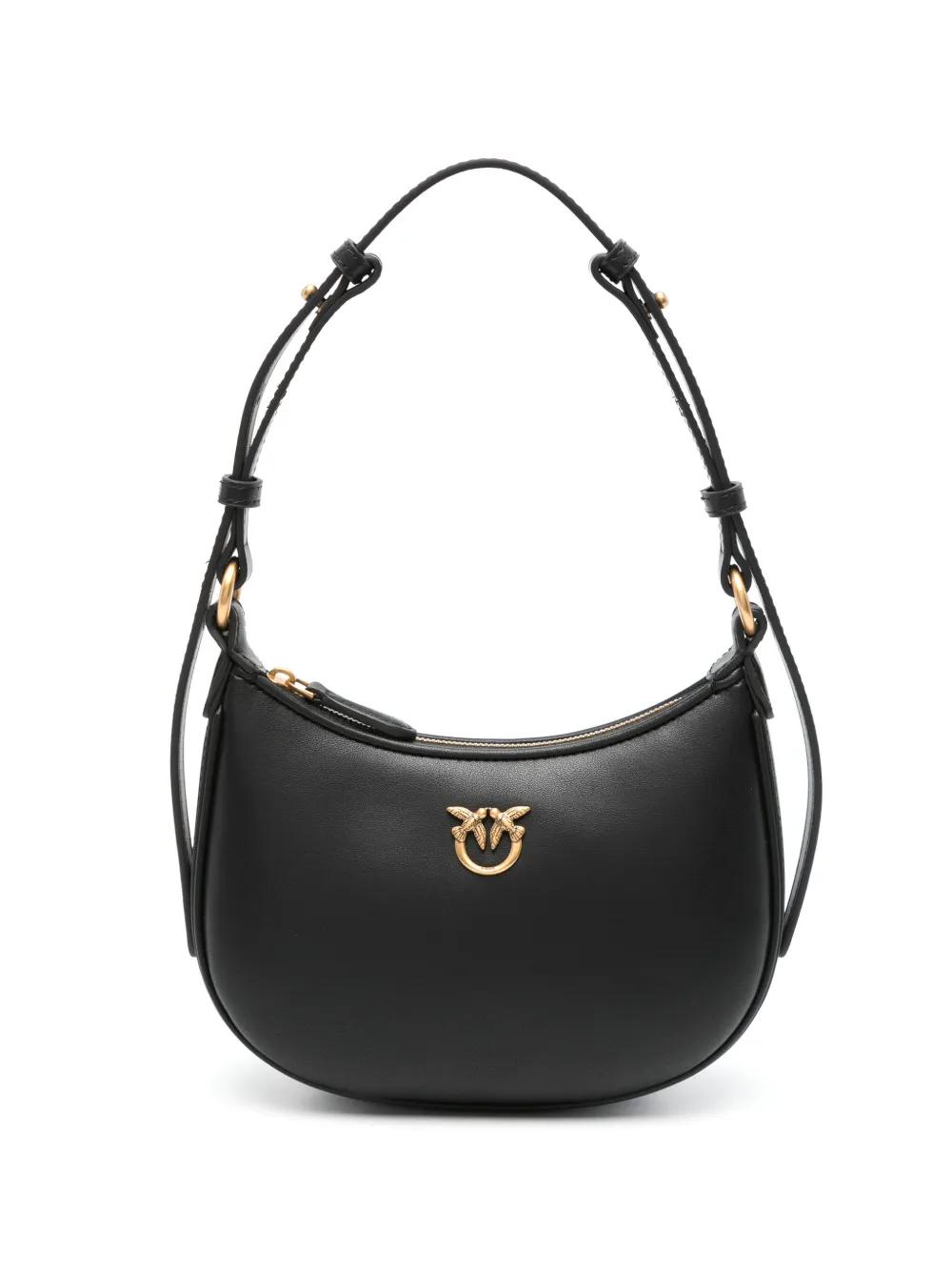 black calf leather smooth grain signature Love Birds plaque top zip fastening adjustable shoulder strap main compartment internal logo patch internal zip-fastening pocket full lining