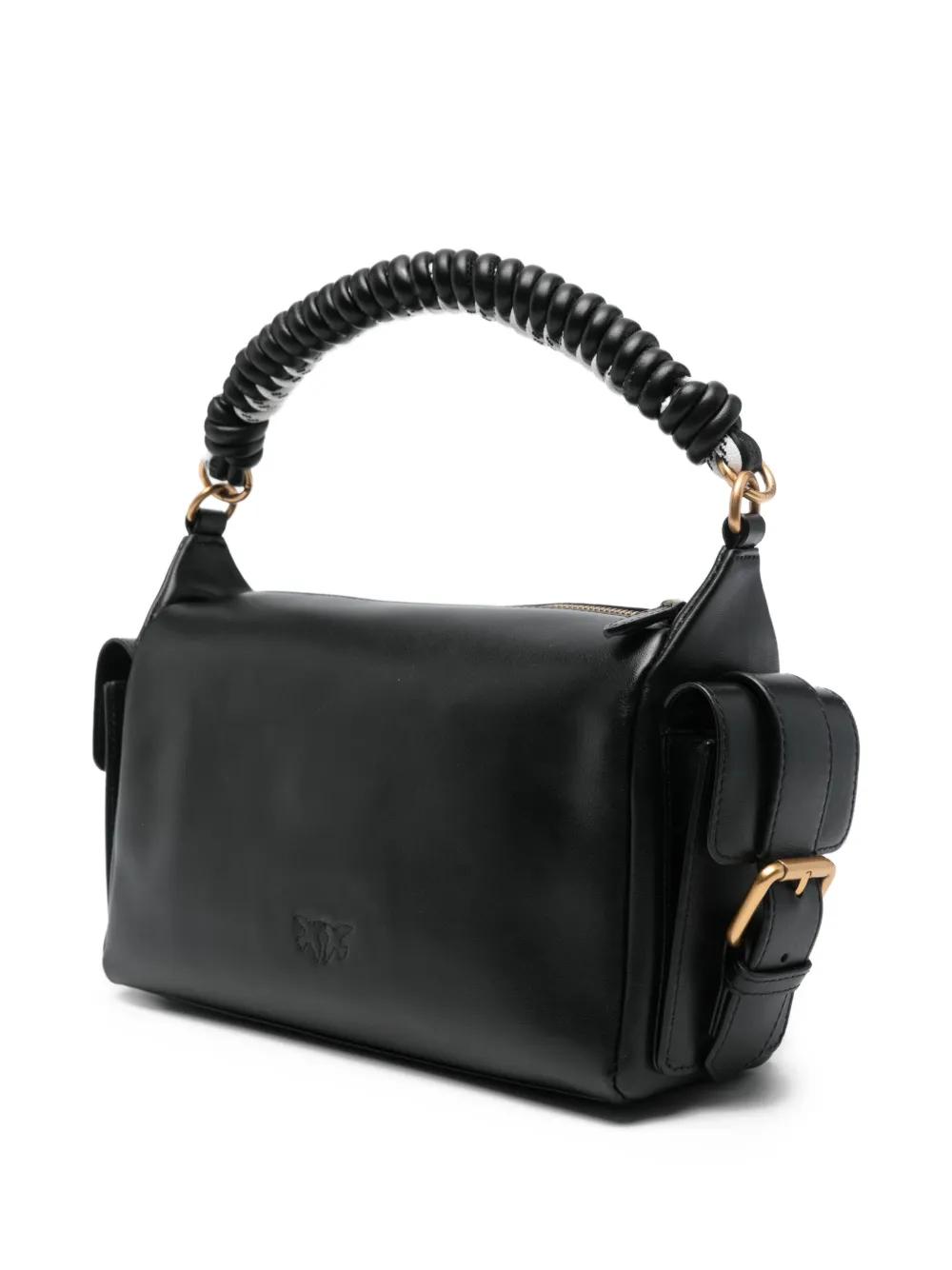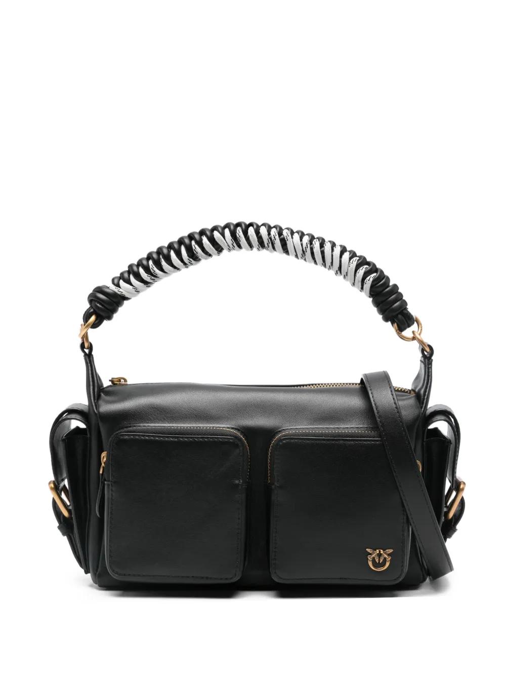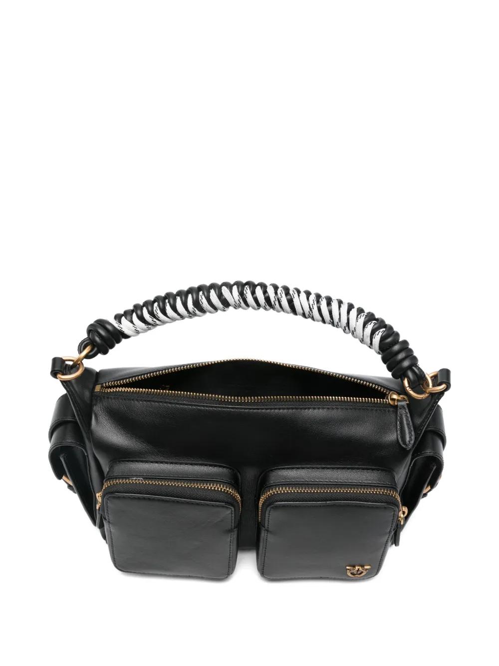 black braided leather top handle front pockets gold-tone hardware zip fastening leather