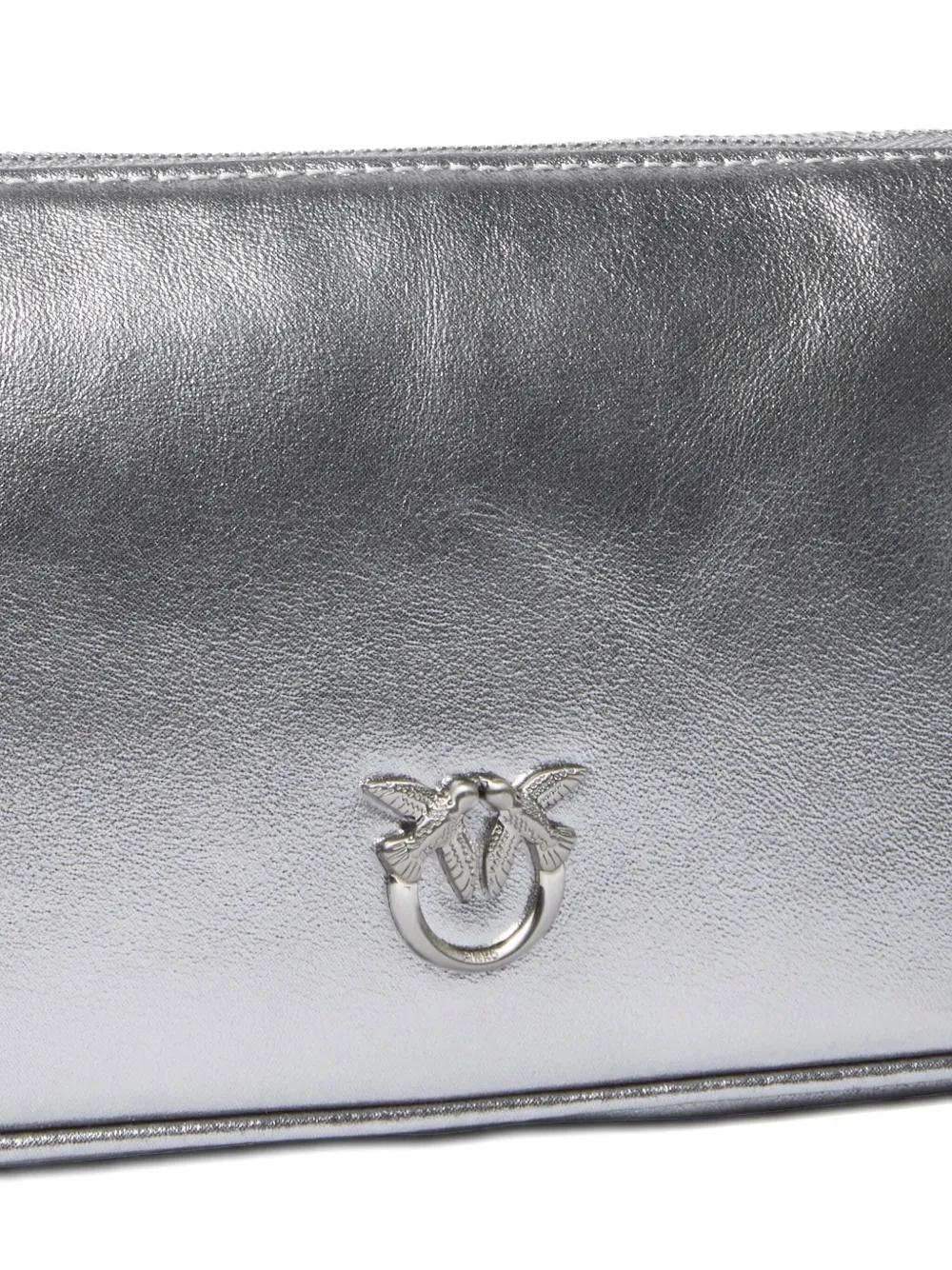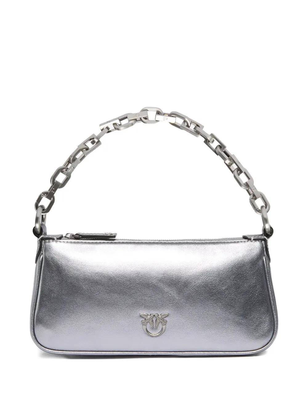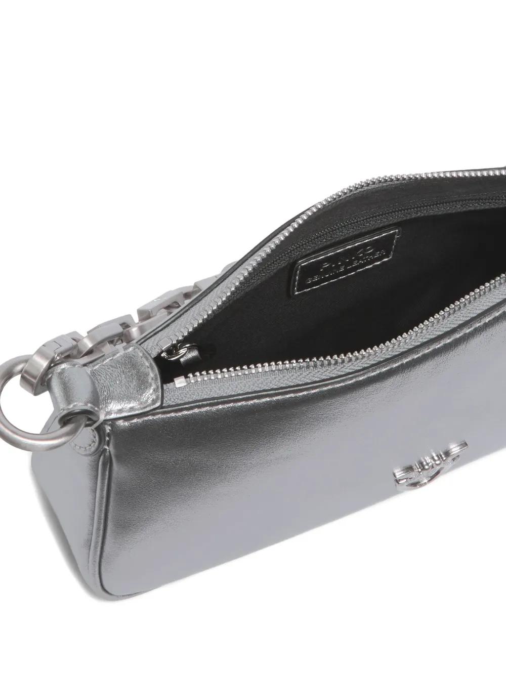gunmetal silver calfskin leather chain-link top handle zip fastening logo emblem