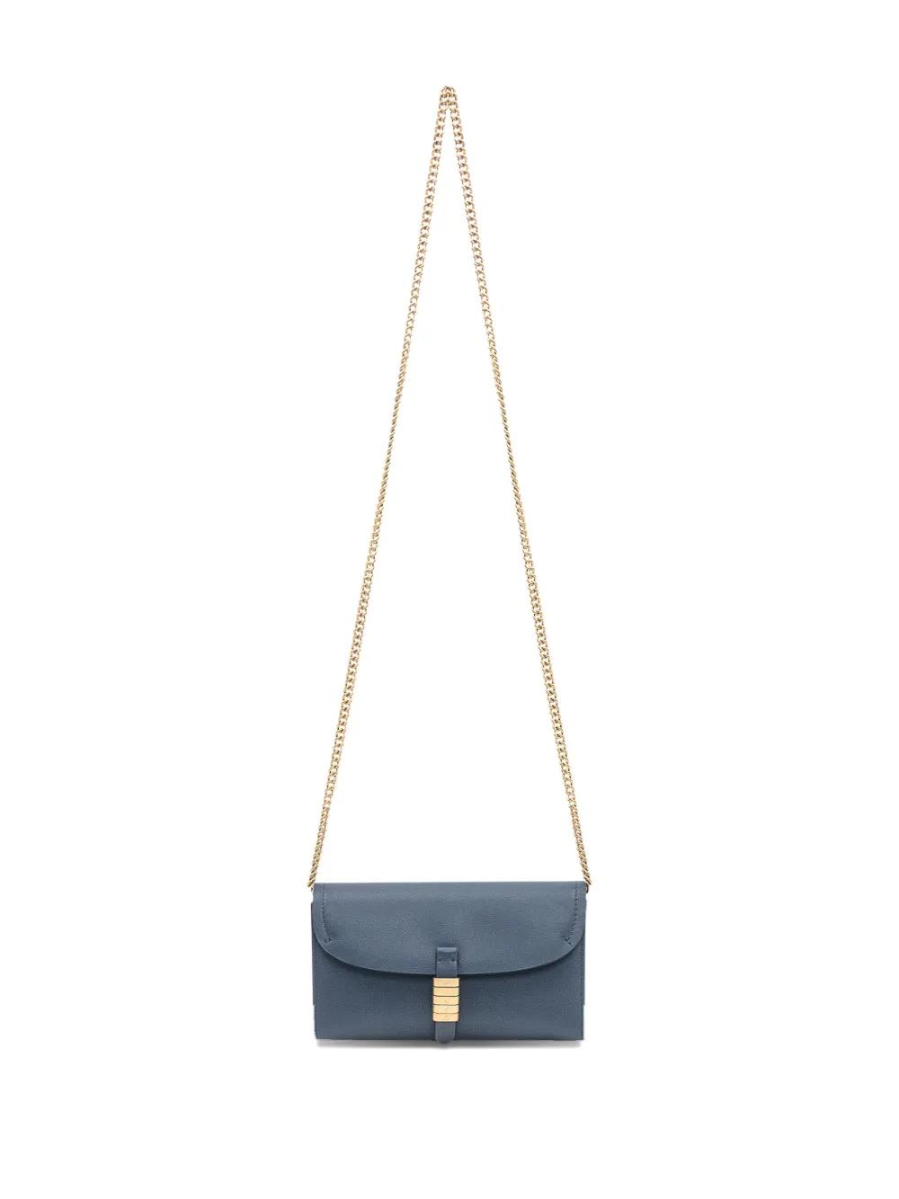 indigo blue chain strap gold-tone hardware top flap embossed logo