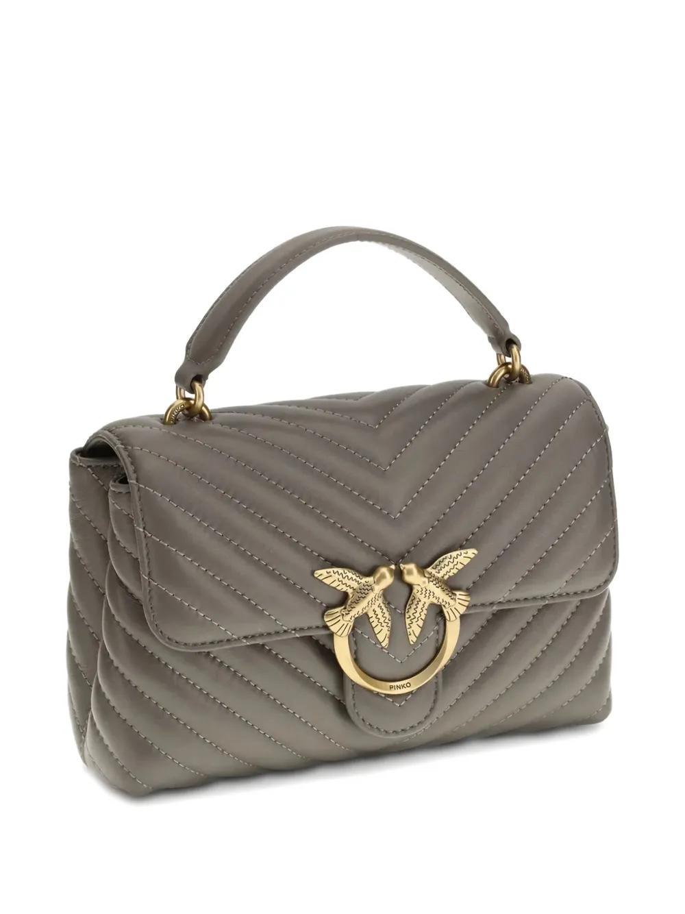 grey chevron pattern top handle bird detail adjustable shoulder strap buckle fastening