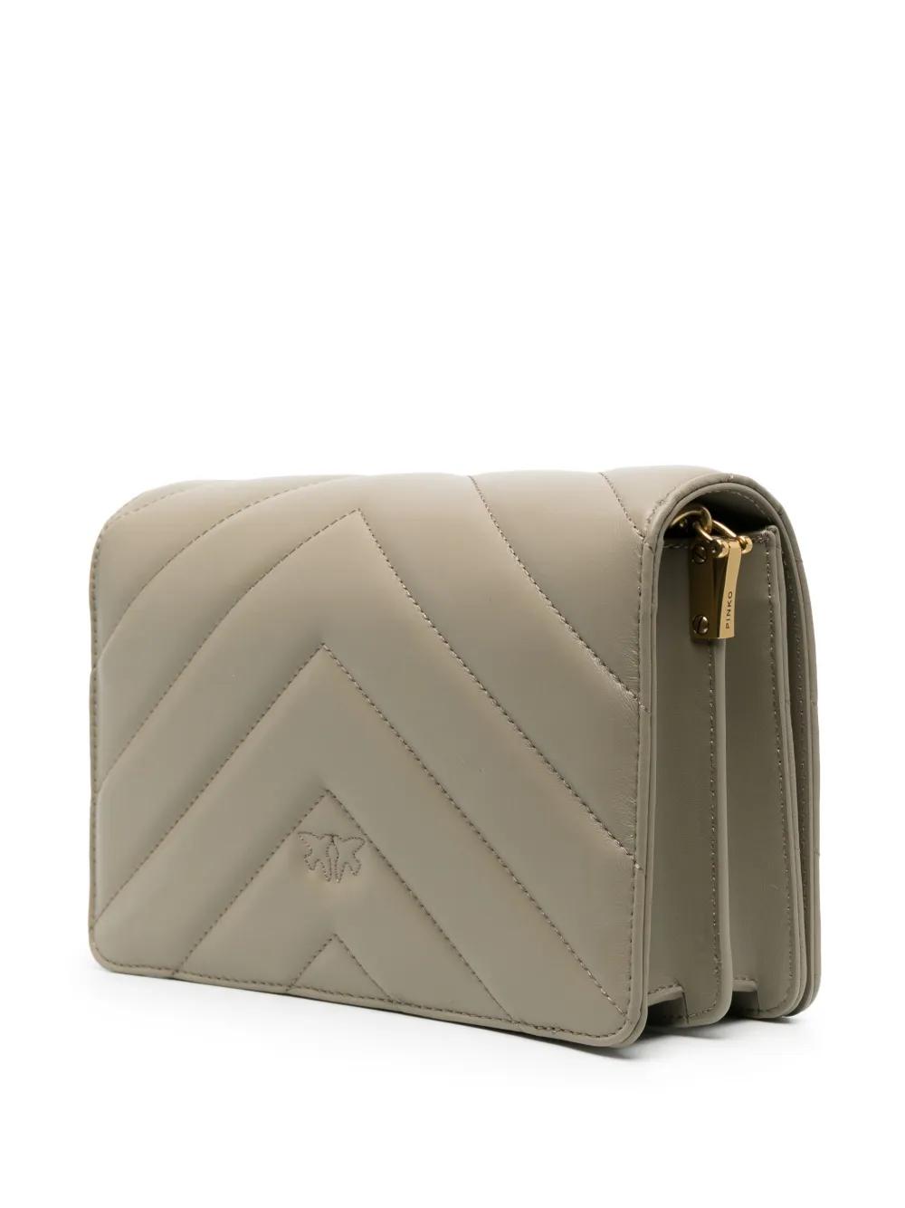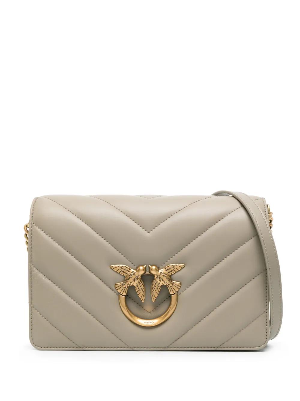 desert sage green calf leather quilted gold-tone hardware signature Love Birds buckle foldover top with magnetic fastening leather and chain-link shoulder strap partitioned compartment internal zip-fastening pocket internal slip pocket