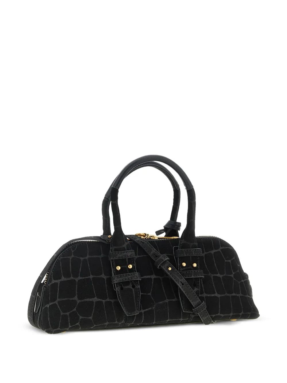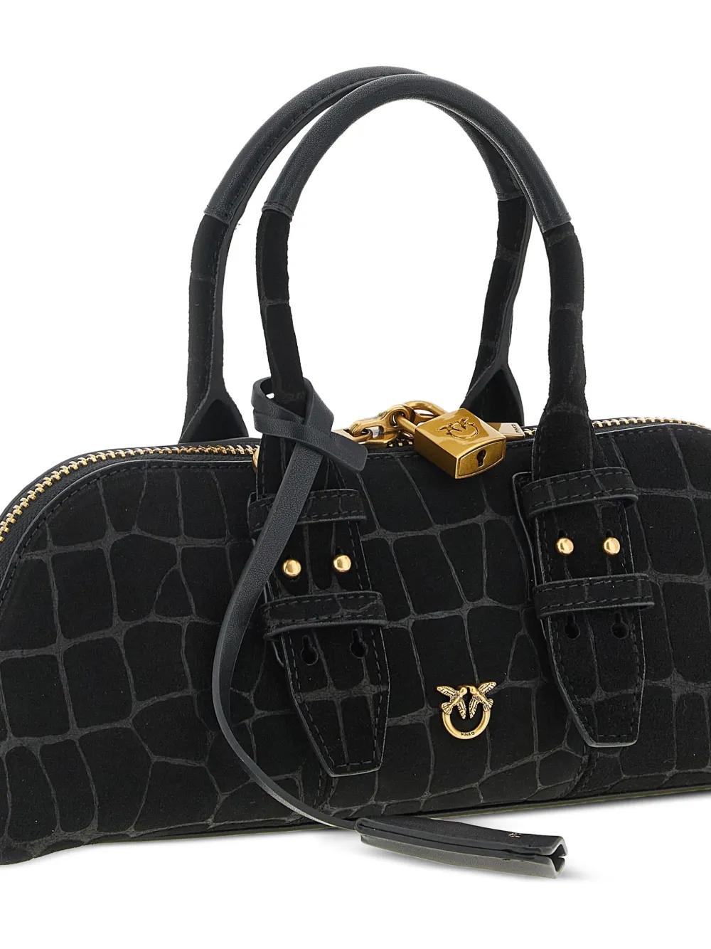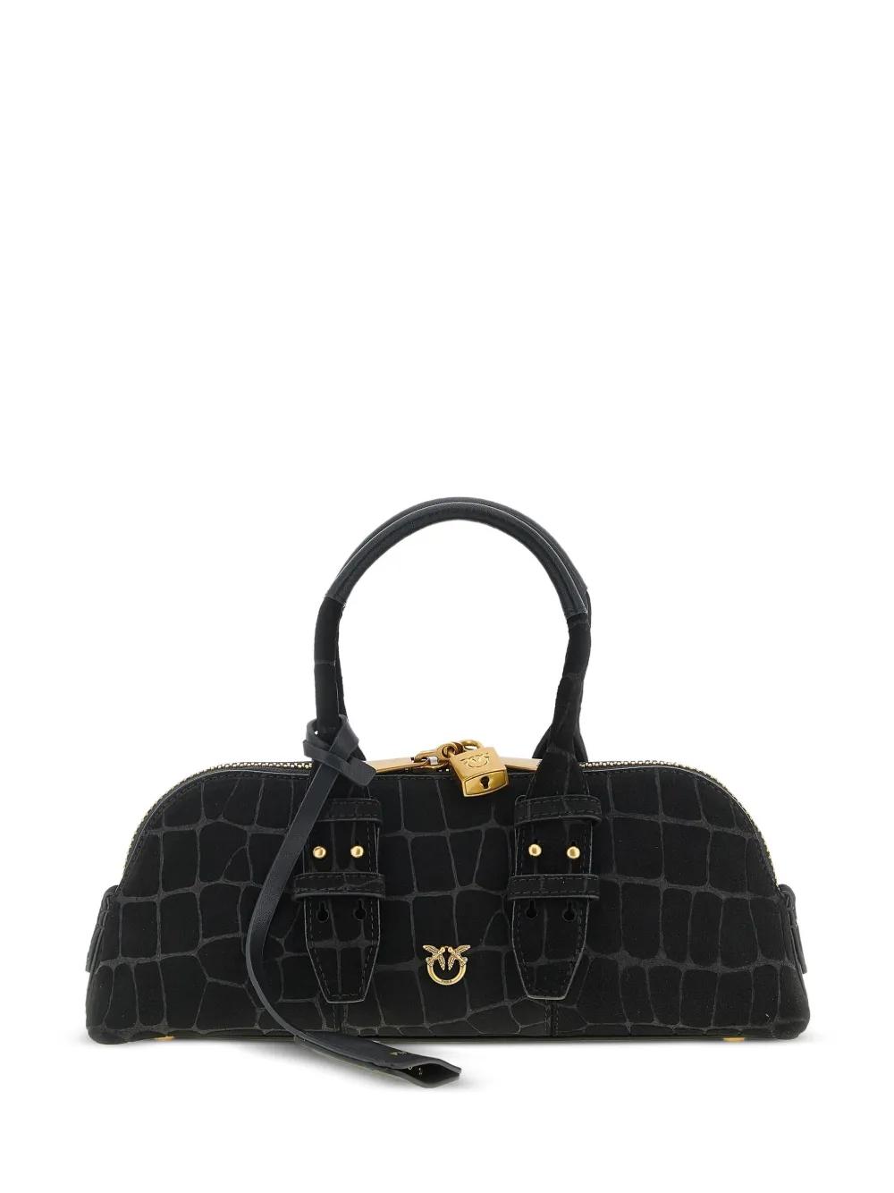 black coconut print metal Love Birds logo double adjustable handle top zip closure metal feet