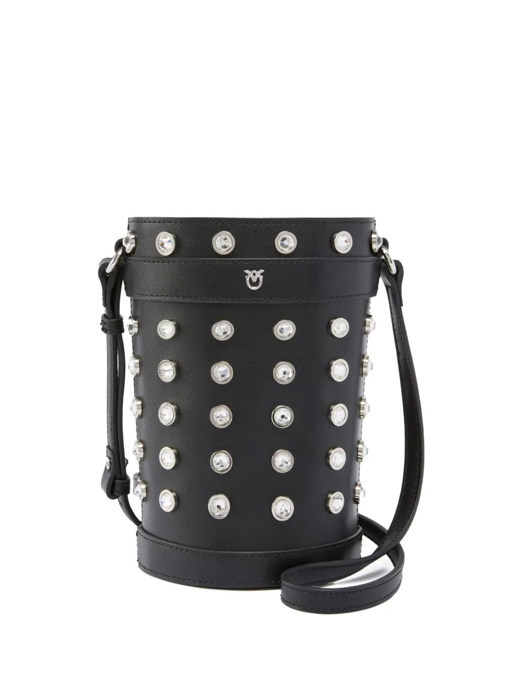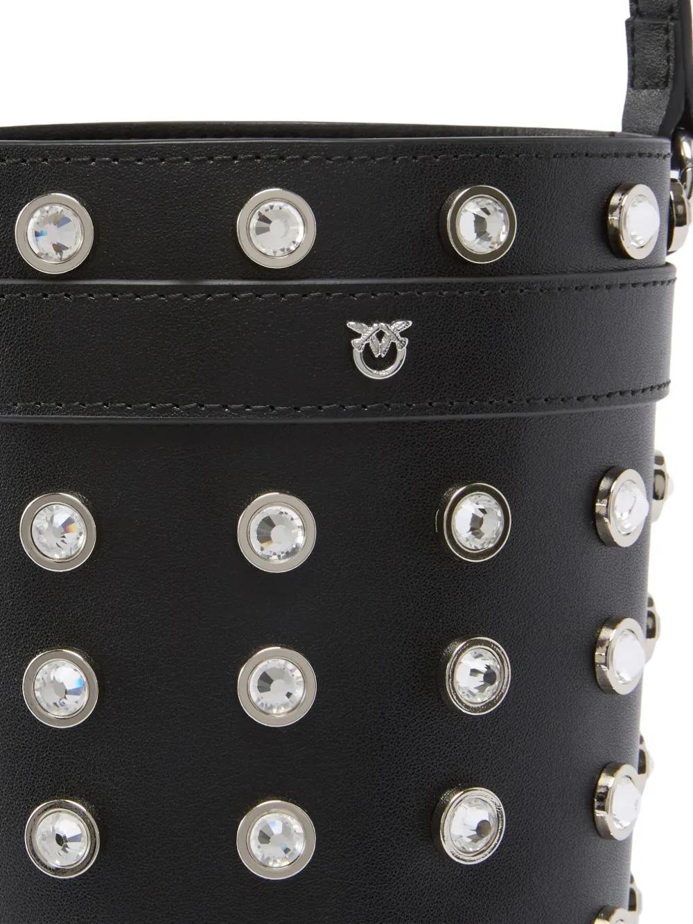 PINKO crystal-embellished leather bucket bag - Black