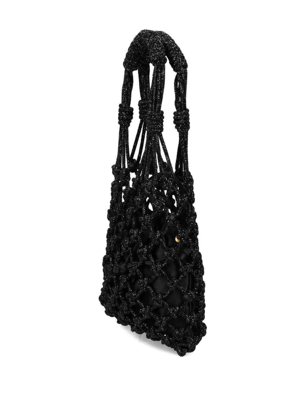 black knotted handles open knit design drawstring internal pouch gold-tone hardware