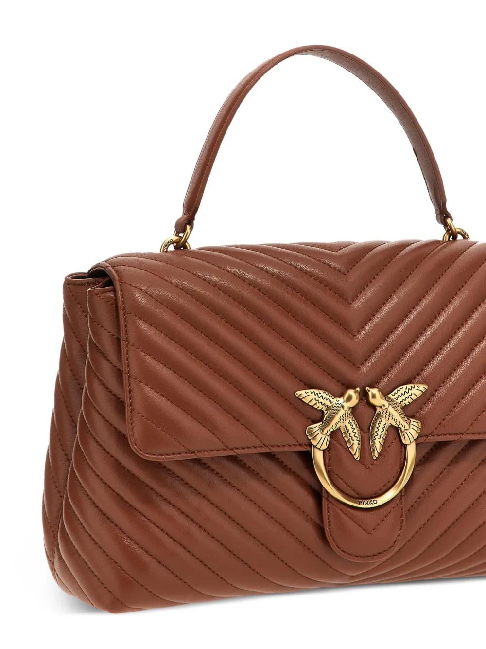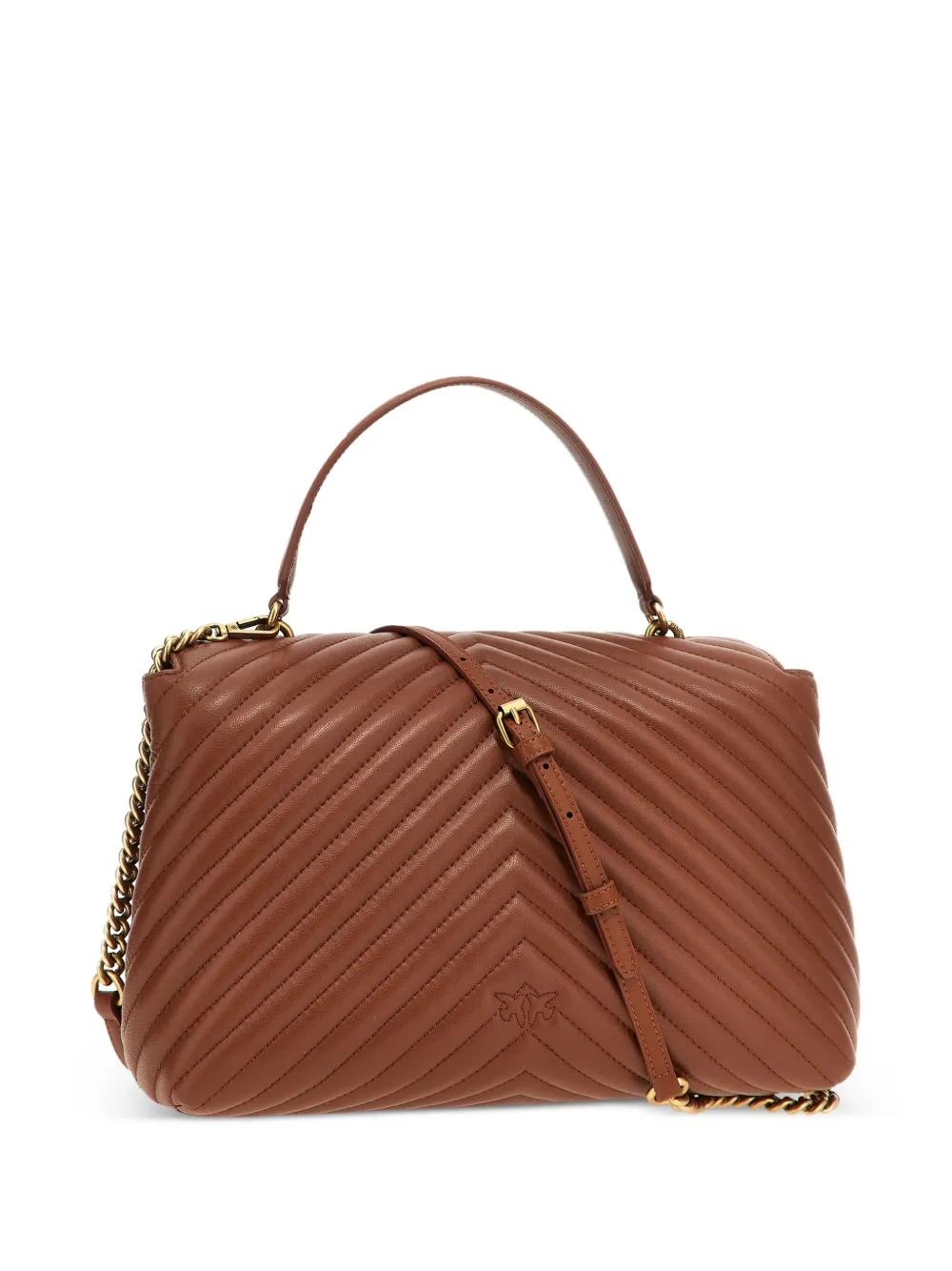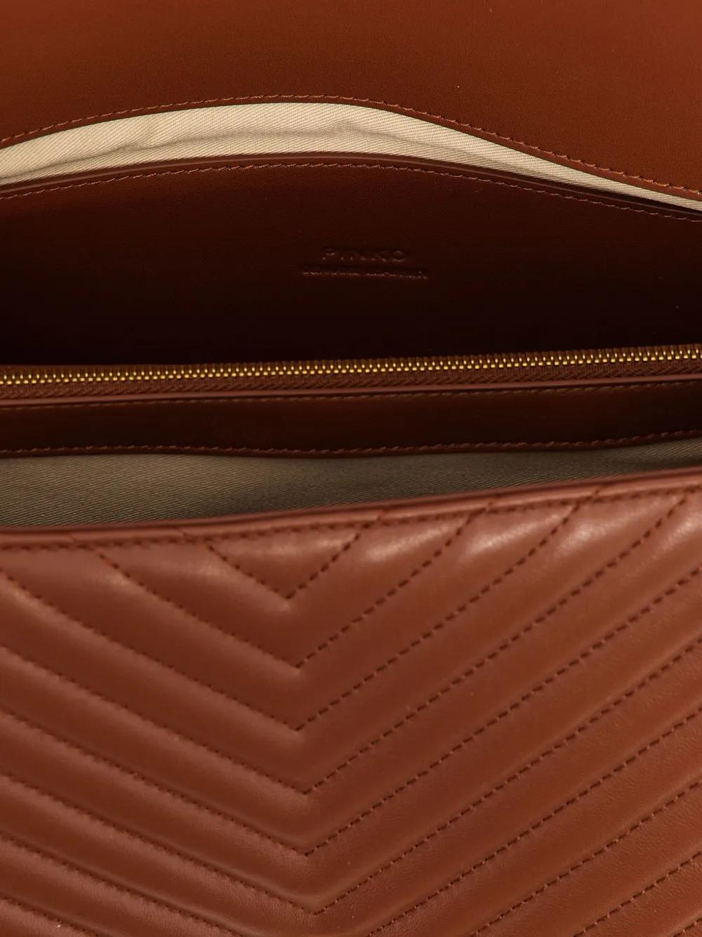 camel brown foldover top with magnetic fastening single top handle adjustable leather and chain-link shoulder strap main compartment
