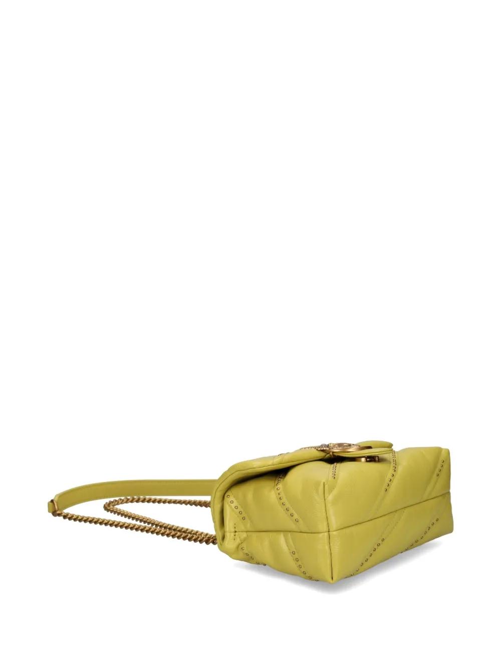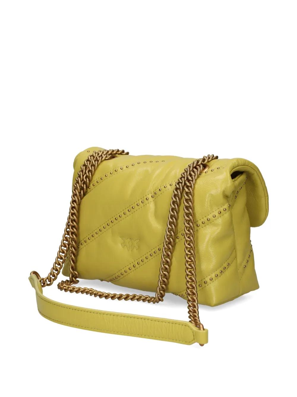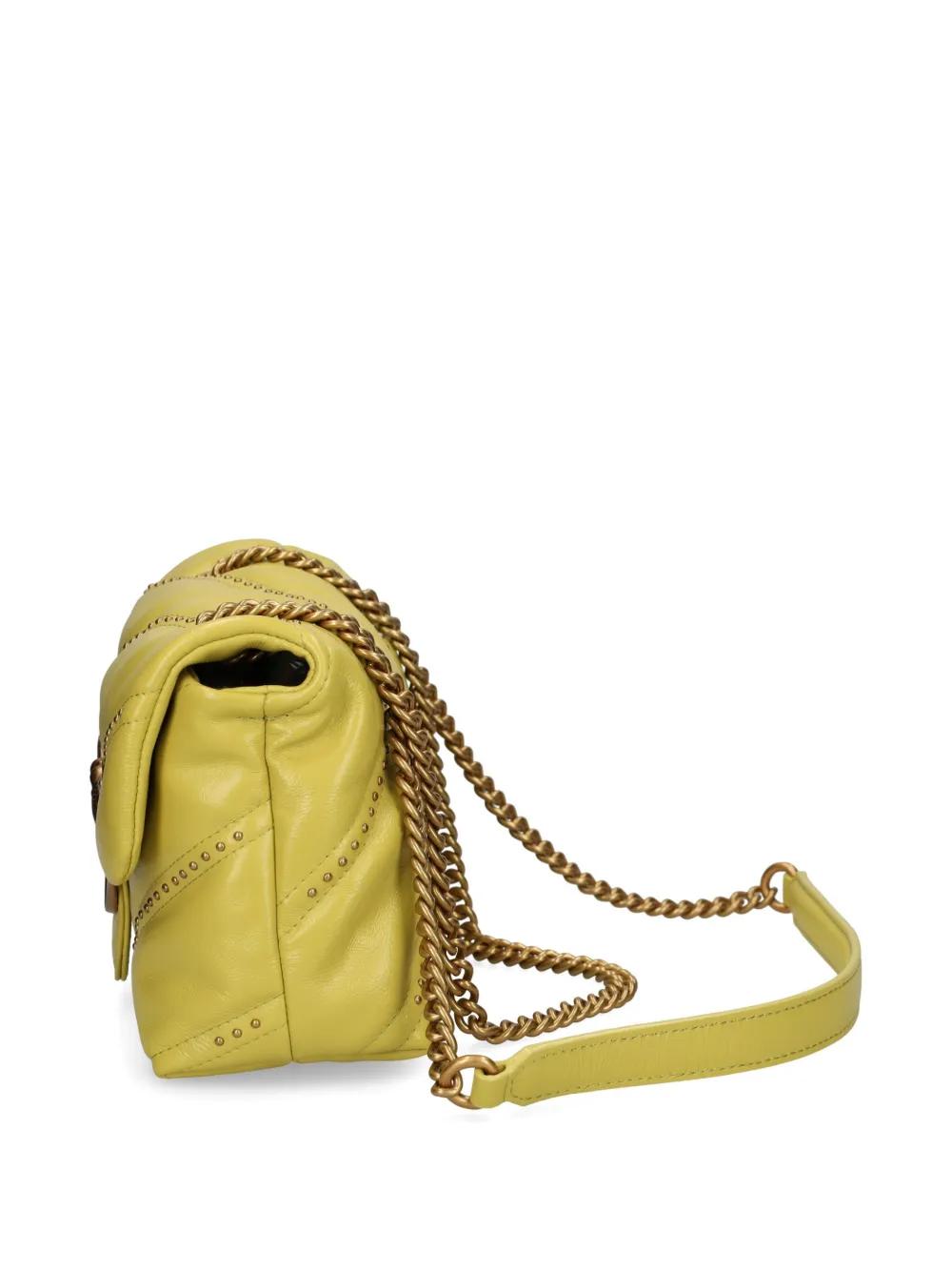 bright yellow studded detailing chain shoulder strap flap closure signature Love Birds buckle