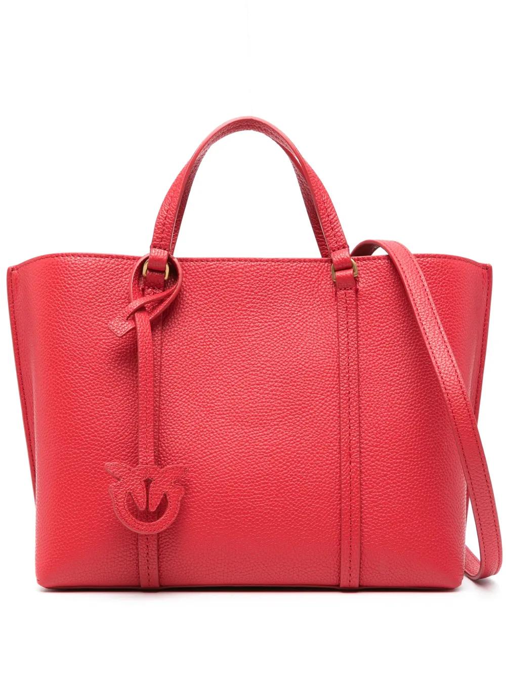 dark red calf leather pebbled texture logo leather charm adjustable detachable shoulder strap leather top handles embroidered logo to the rear partitioned compartment internal zip-fastening pocket internal card slots debossed internal logo tonal stitching full lining antique-effect hardware open top
