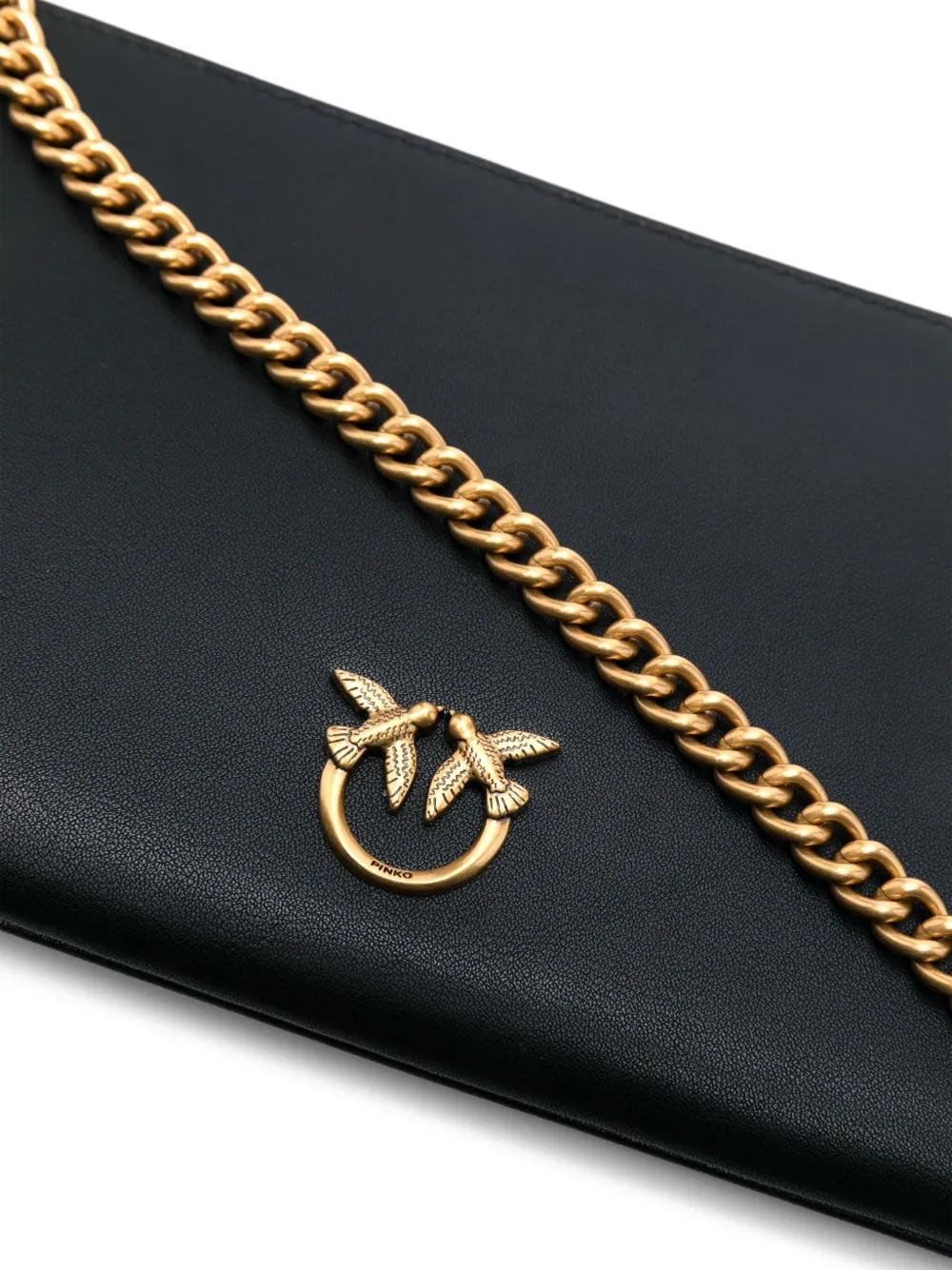 black calf leather grained texture signature Love Birds buckle chain-link shoulder strap main compartment internal zip-fastening pocket six internal card slots contrast lining gold-tone hardware gold-tone hardware top zip fastening This piece comes complete with a protective dust bag.