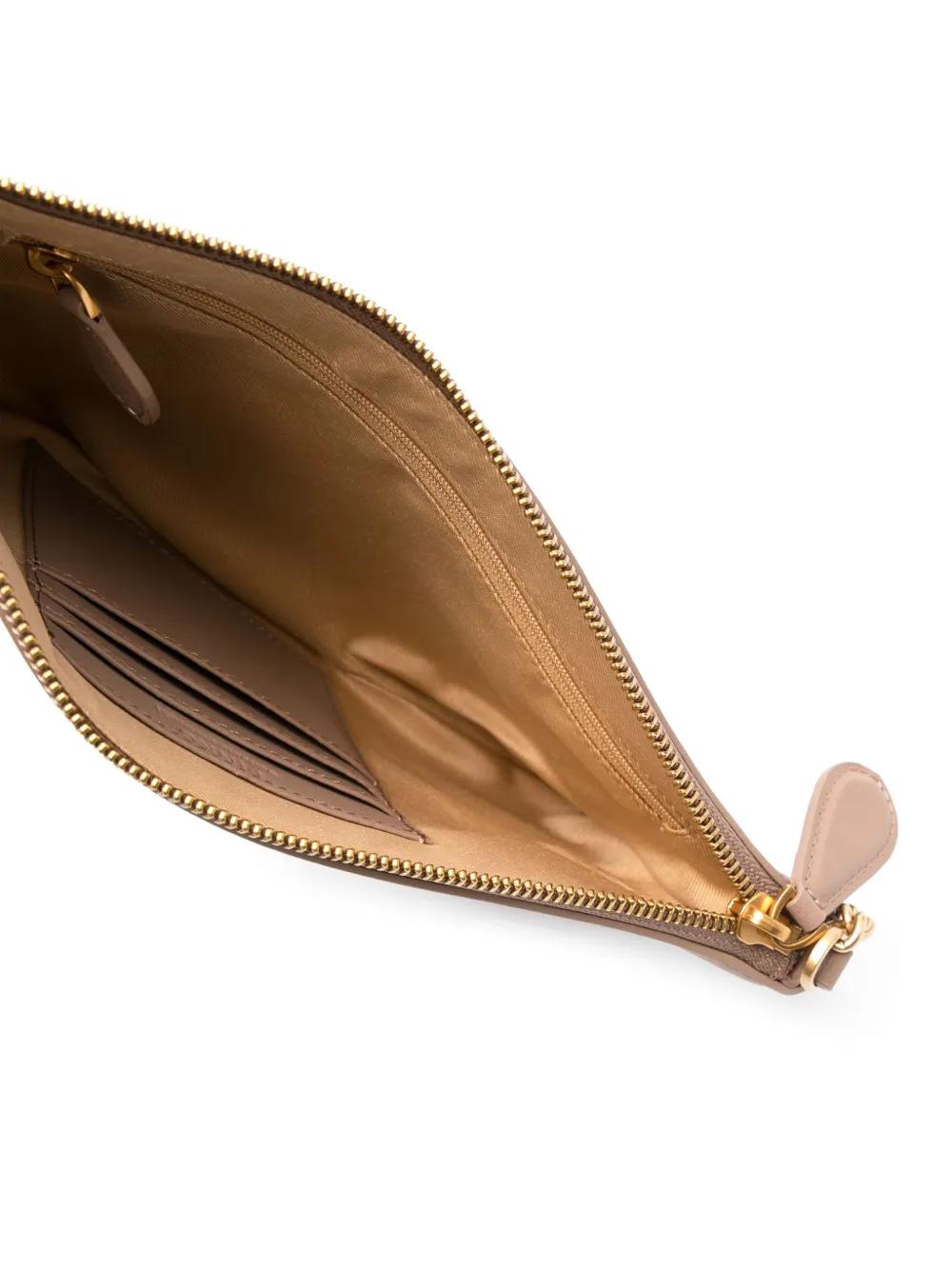 beige calf leather grained texture signature Love Birds buckle chain-link shoulder strap main compartment internal zip-fastening pocket six internal card slots contrast lining gold-tone hardware gold-tone hardware top zip fastening This piece comes complete with a protective dust bag.