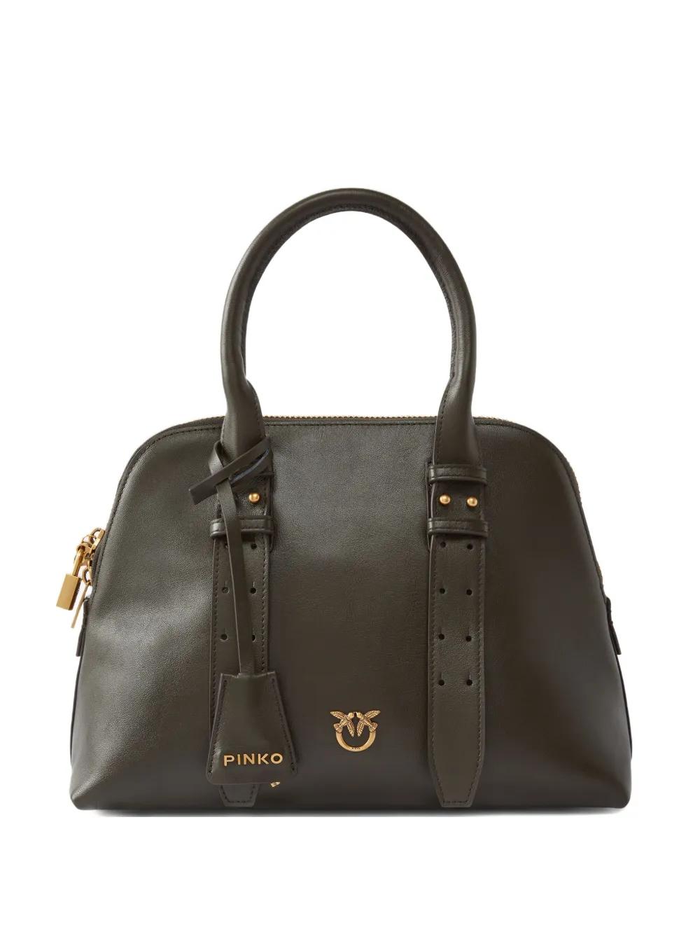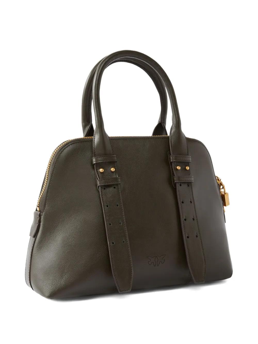 dark green top zip fastening padlock fastening two rolled top handles adjustable detachable shoulder strap