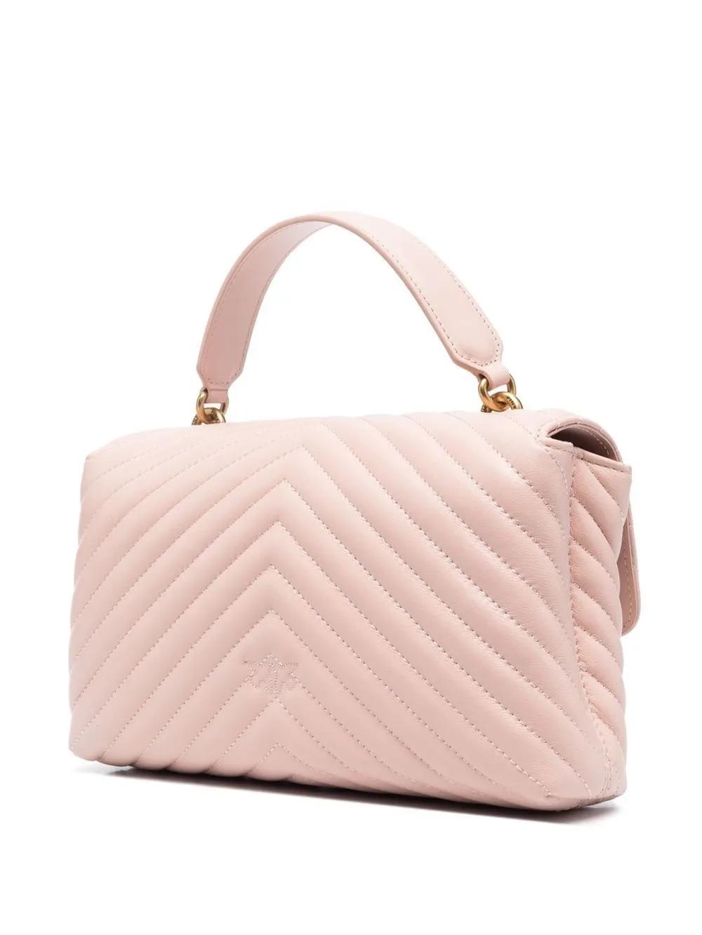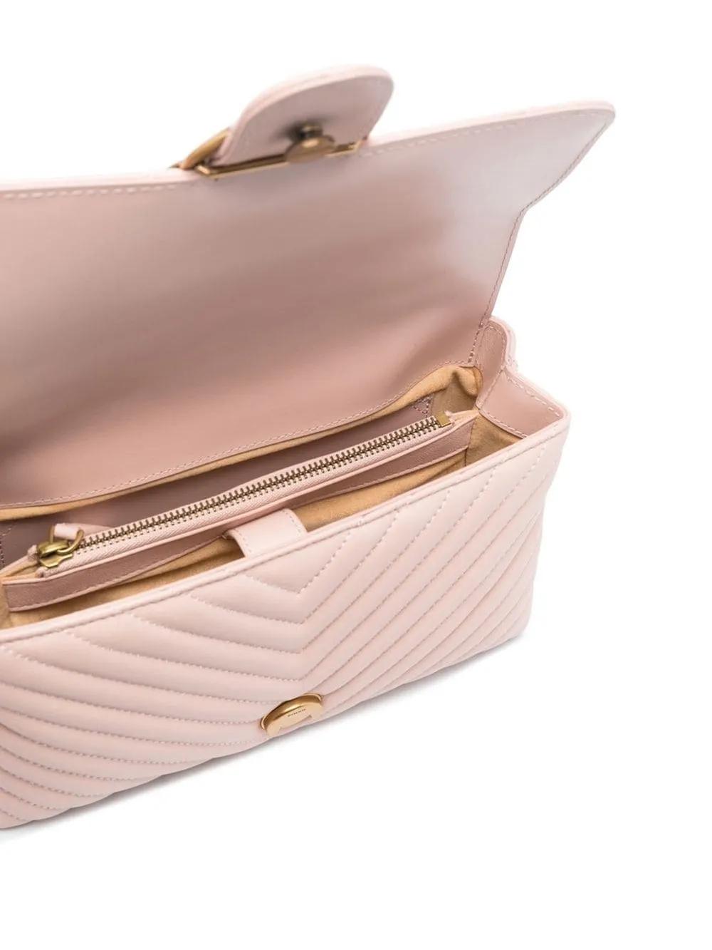 light pink calf leather gold-tone hardware quilted logo plaque foldover top with press-stud fastening single circular top handle detachable shoulder strap internal zip-fastening pocket partitioned compartment full lining