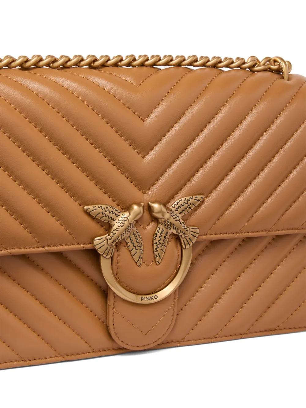 golden brown foldover top chain-link shoulder strap signature Love Birds buckle