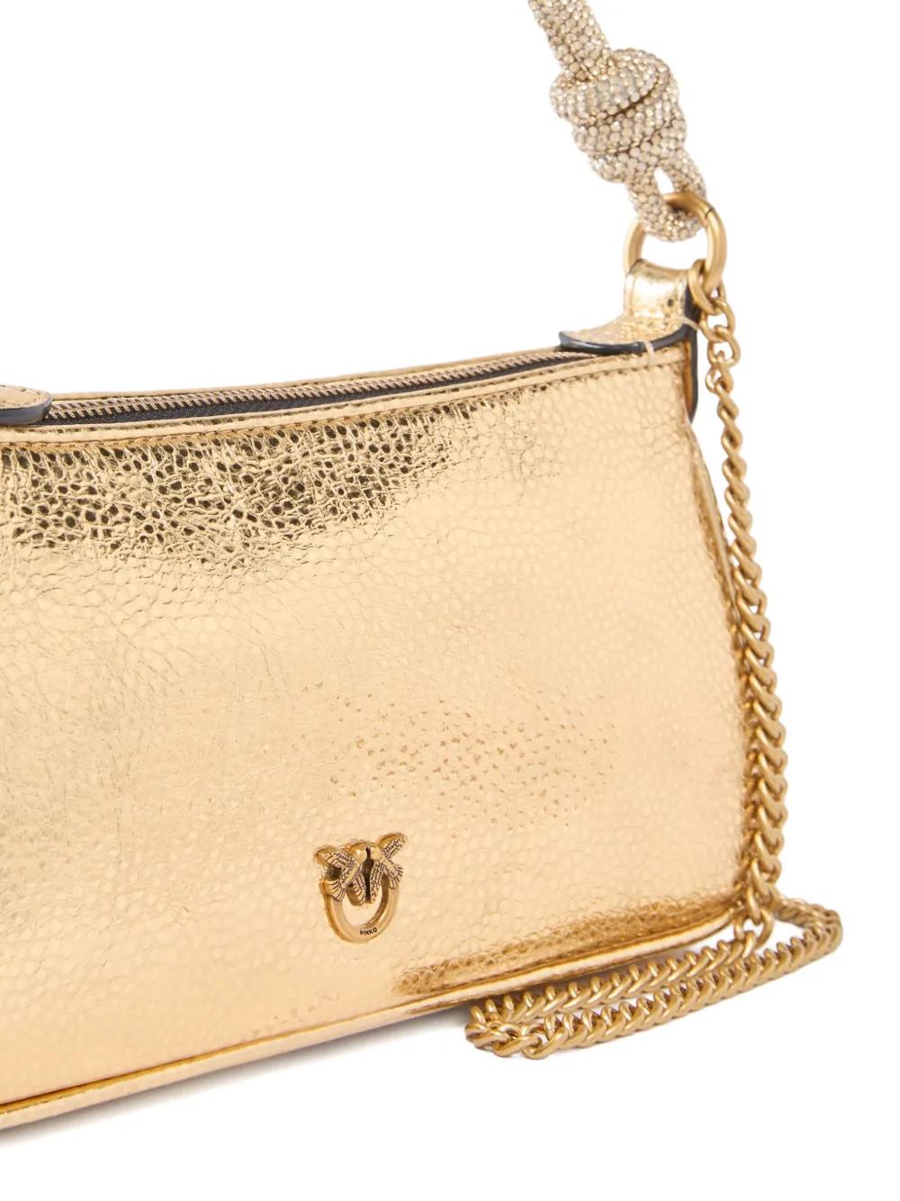 PINKO mini signature Love Birds buckle tote bag - Gold